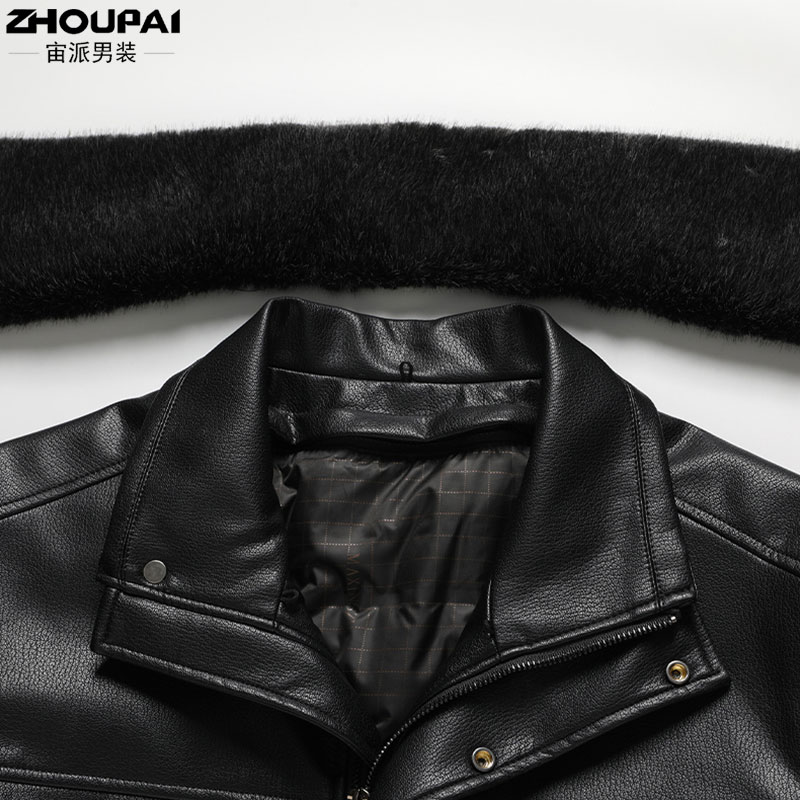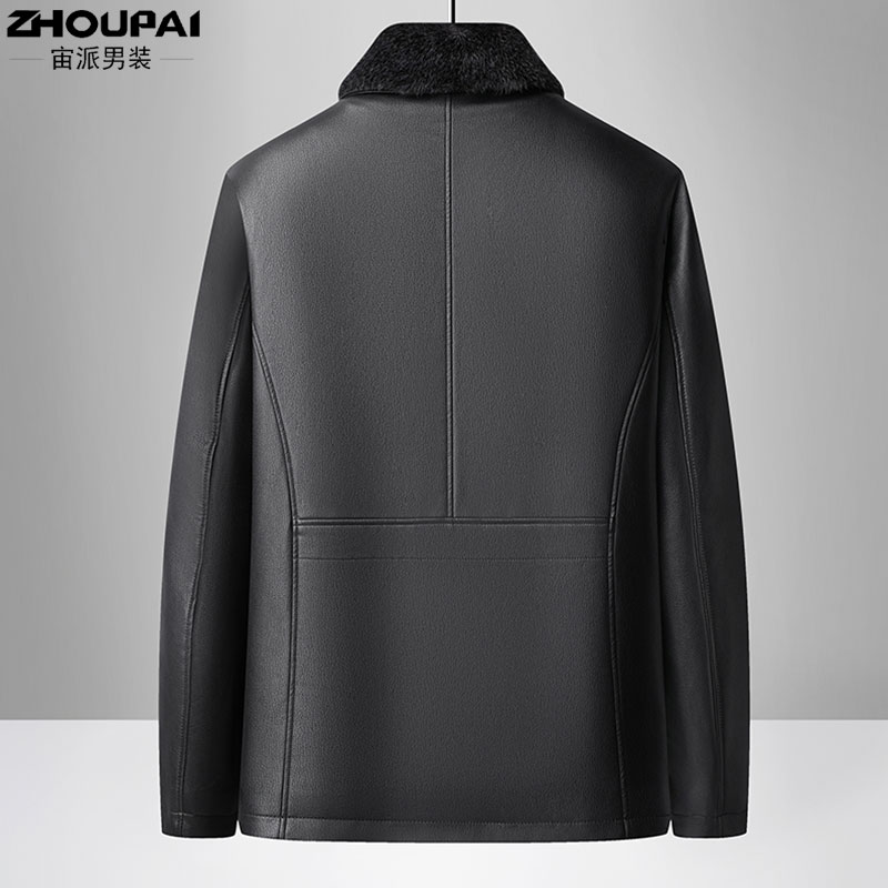 加厚短款 冬季 皮衣爸爸冬装 中年男士 可拆卸两件套爷爷保暖外套 新款