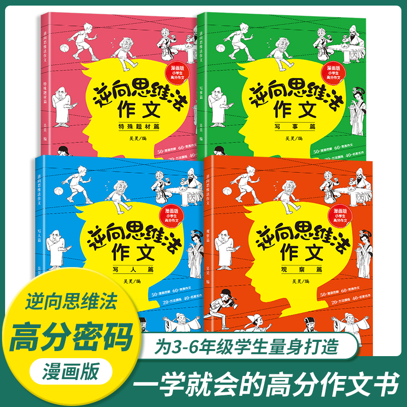 逆向思维法作文全套四册吴昊小学生三年级四年级五年级六年级作文书大全漫画版 高分反向思维作文优美句子训练老师高分作文素材初中