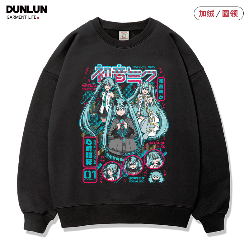 动漫联名圆领卫衣男初音未来miku周边衣服二次元 秋冬加绒宽松外套