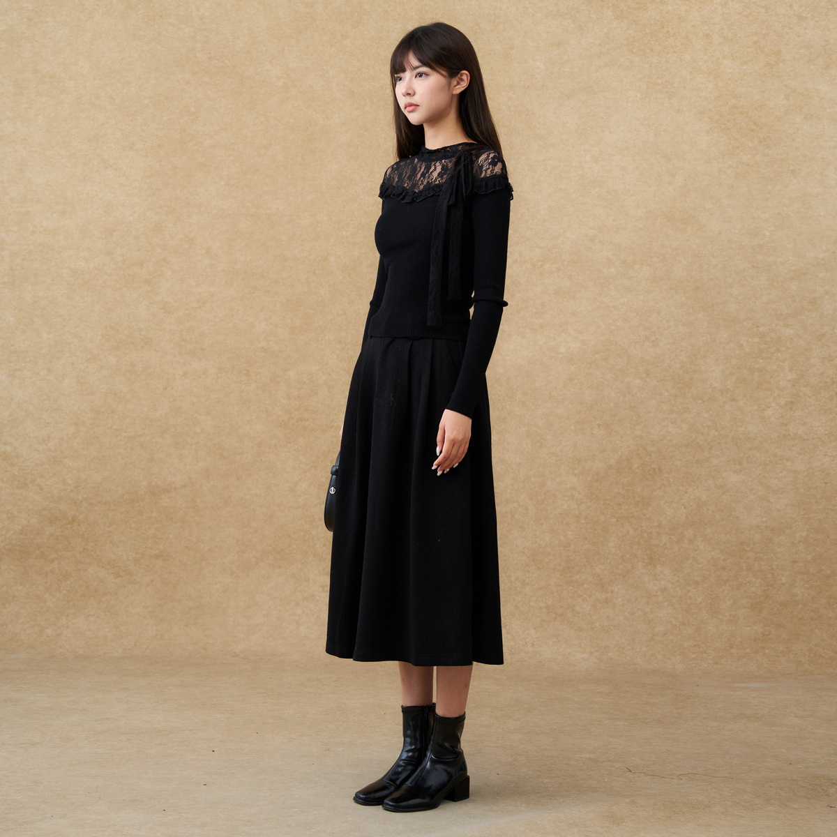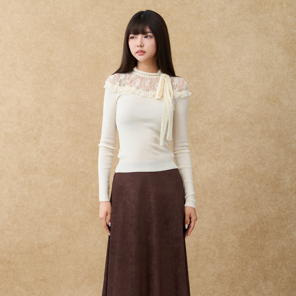 新款 2025冬季 蕾丝拼接蝴蝶结上衣XXAD10502 女装 西町村屋温柔小衫