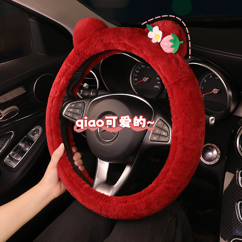 汽车方向盘套婴儿绒四季 d型汽车保护把套子 通用防滑吸汗男女冬季