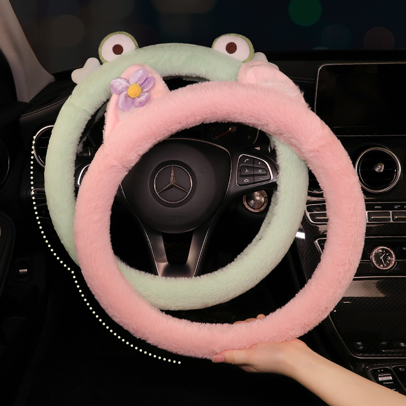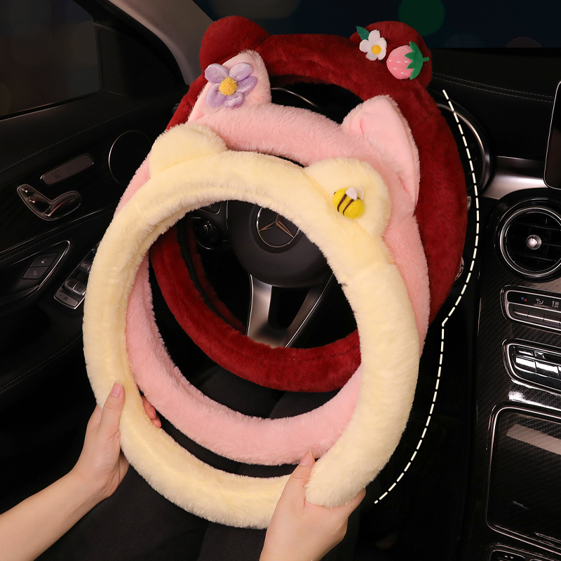 新款 通用女防滑高级吸汗透气四轮车通用型 猫耳朵汽车方向盘套四季