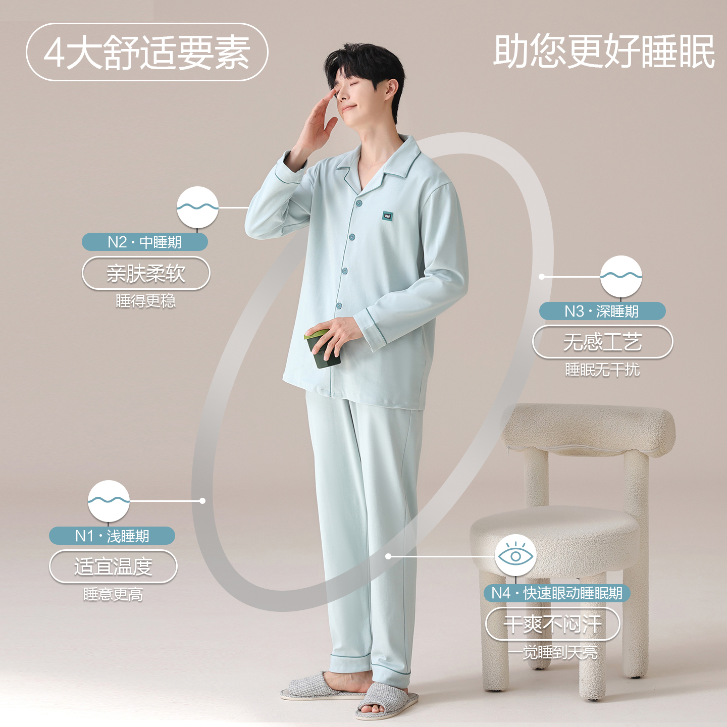 睡衣纯棉布料100全棉长袖 家居服套装 套装 可外穿男生冬季 男款 男士