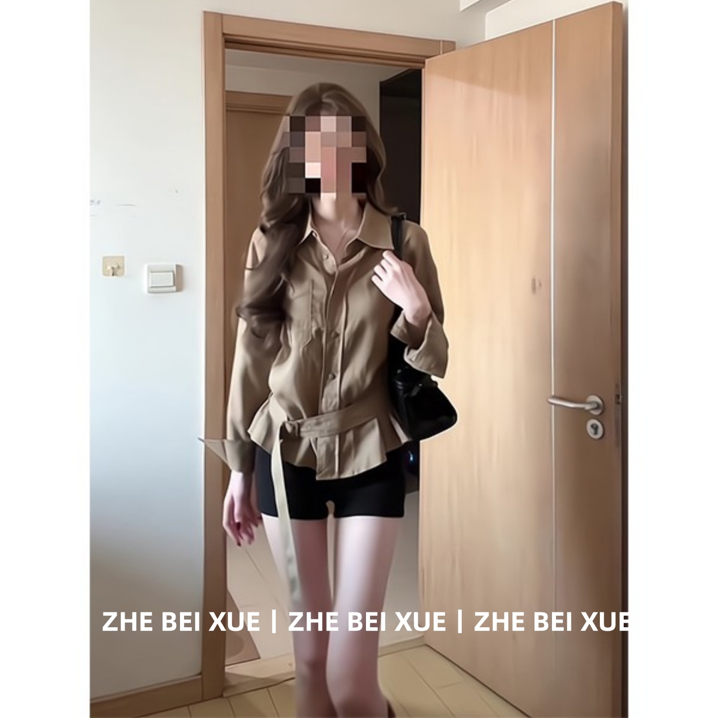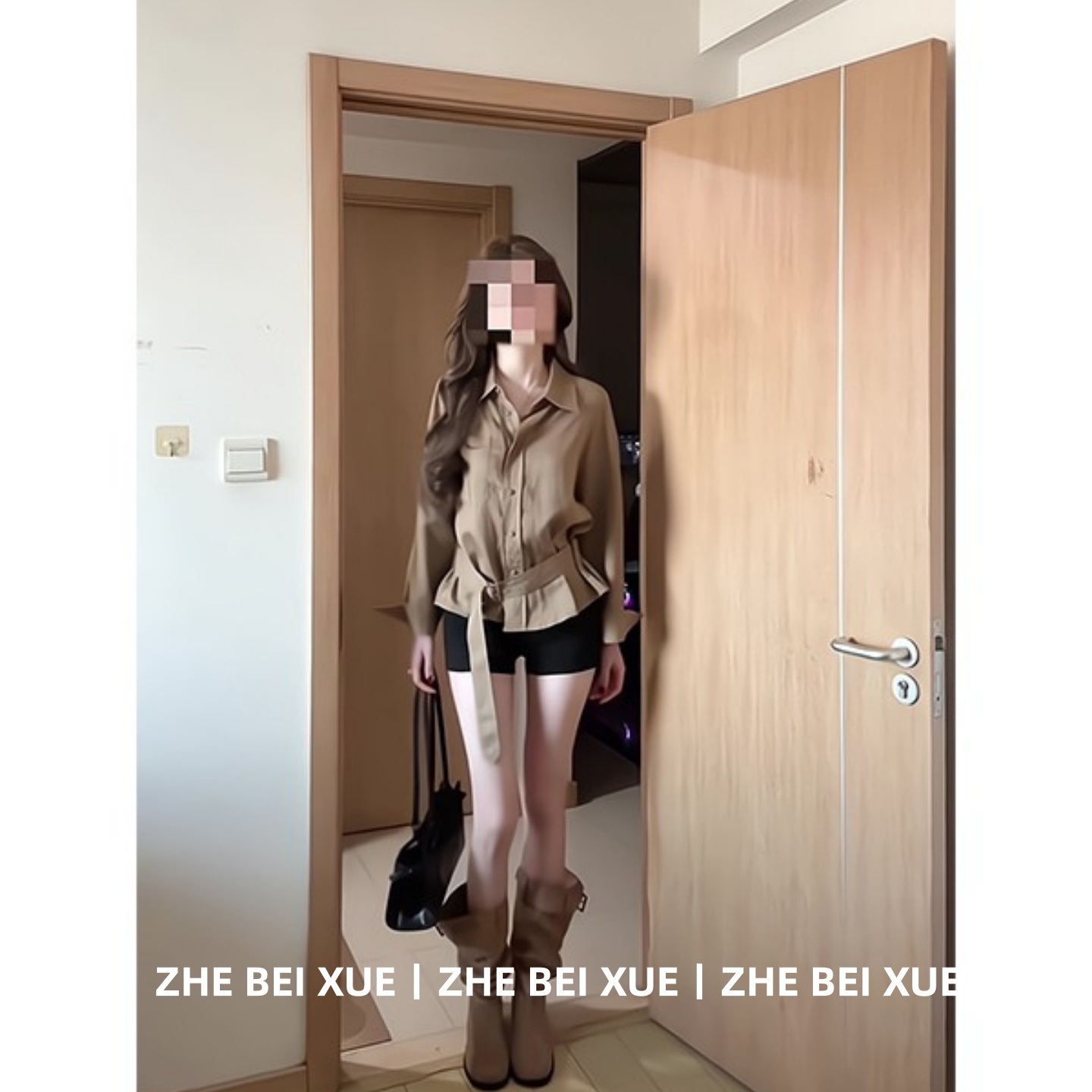 巨好看 上衣高腰黑色短裤 早秋一整套 女高级感休闲翻领长袖 套装