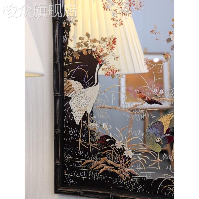 沙发背景墙复古壁画花鸟玄关镜子挂画 饰画2025新款 法式 客厅镜面装