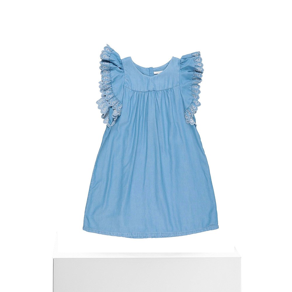 晚白2025年夏新款 多巴胺棉质冰川蓝淡人穿搭收腰圆领花苞裙连衣裙