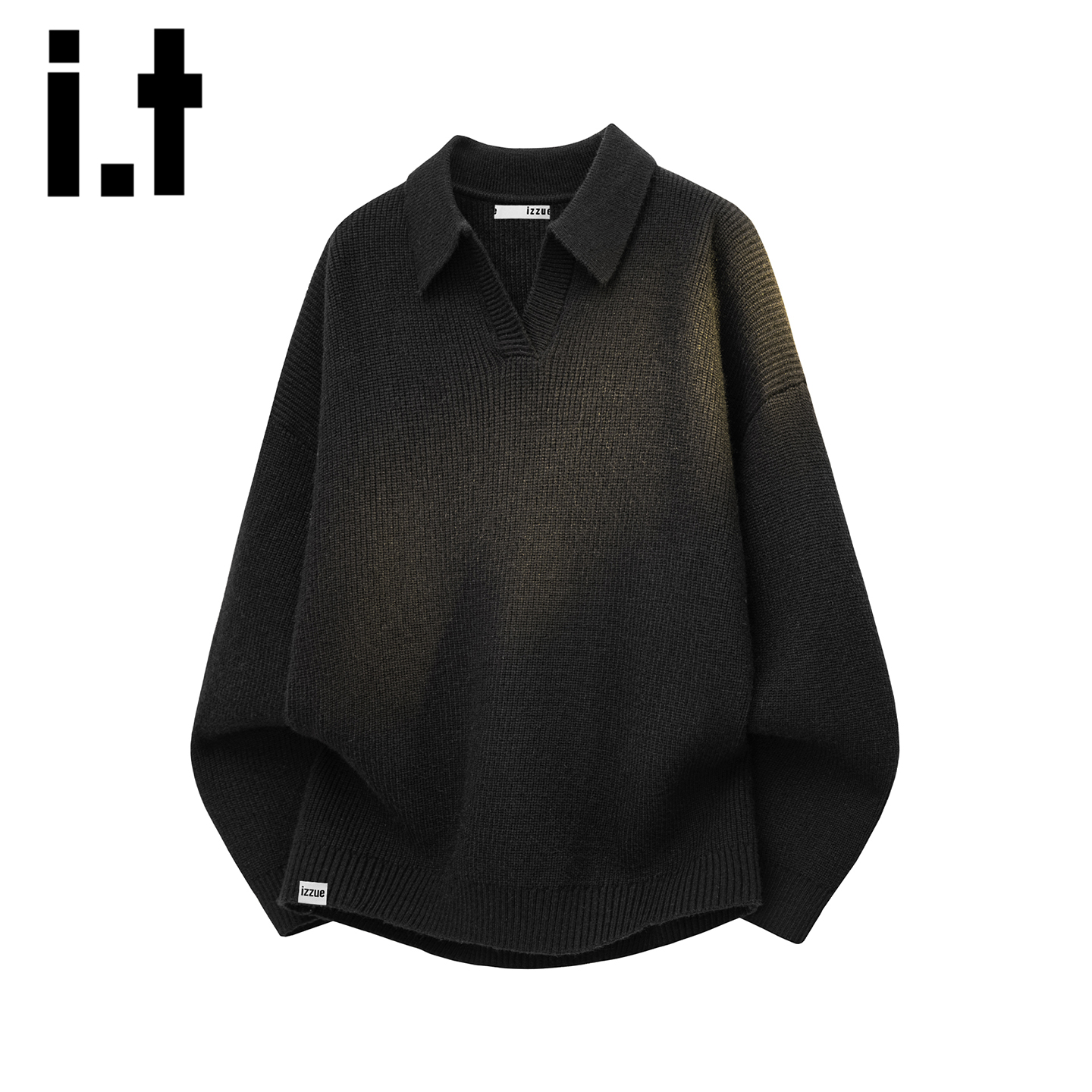 izzue 保暖宽松休闲针织衫 美式 2025秋季 上衣Y 潮牌翻领毛衣男士