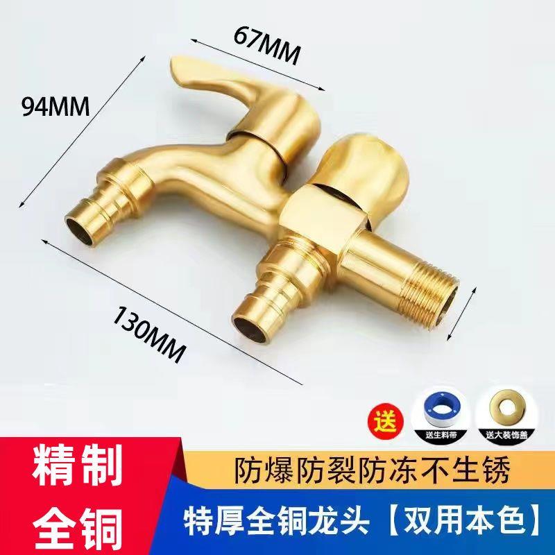 精铜加厚防爆洗衣机水龙头拖把池专用家用一进二出4分加长水嘴头