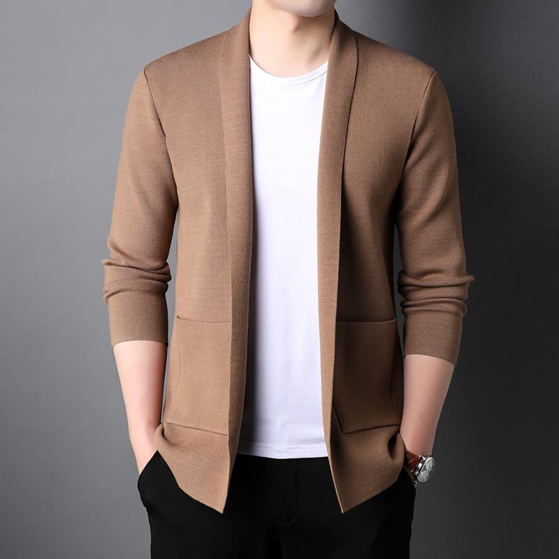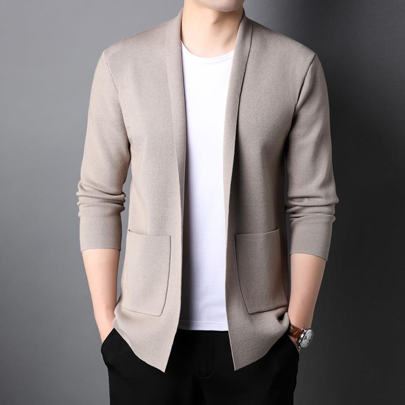 翻领纯色开衫 潮流韩版 长袖 休闲百搭毛衣针织衫 男士 保罗官方春秋季