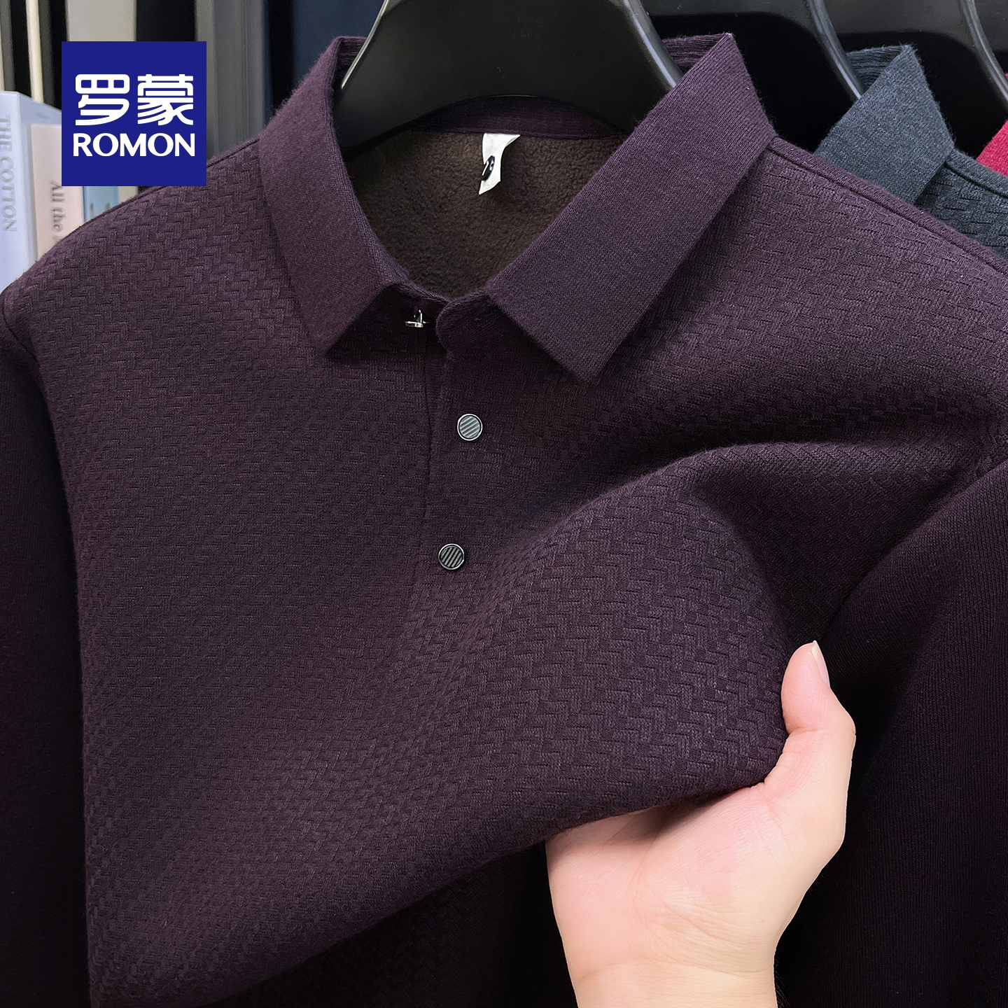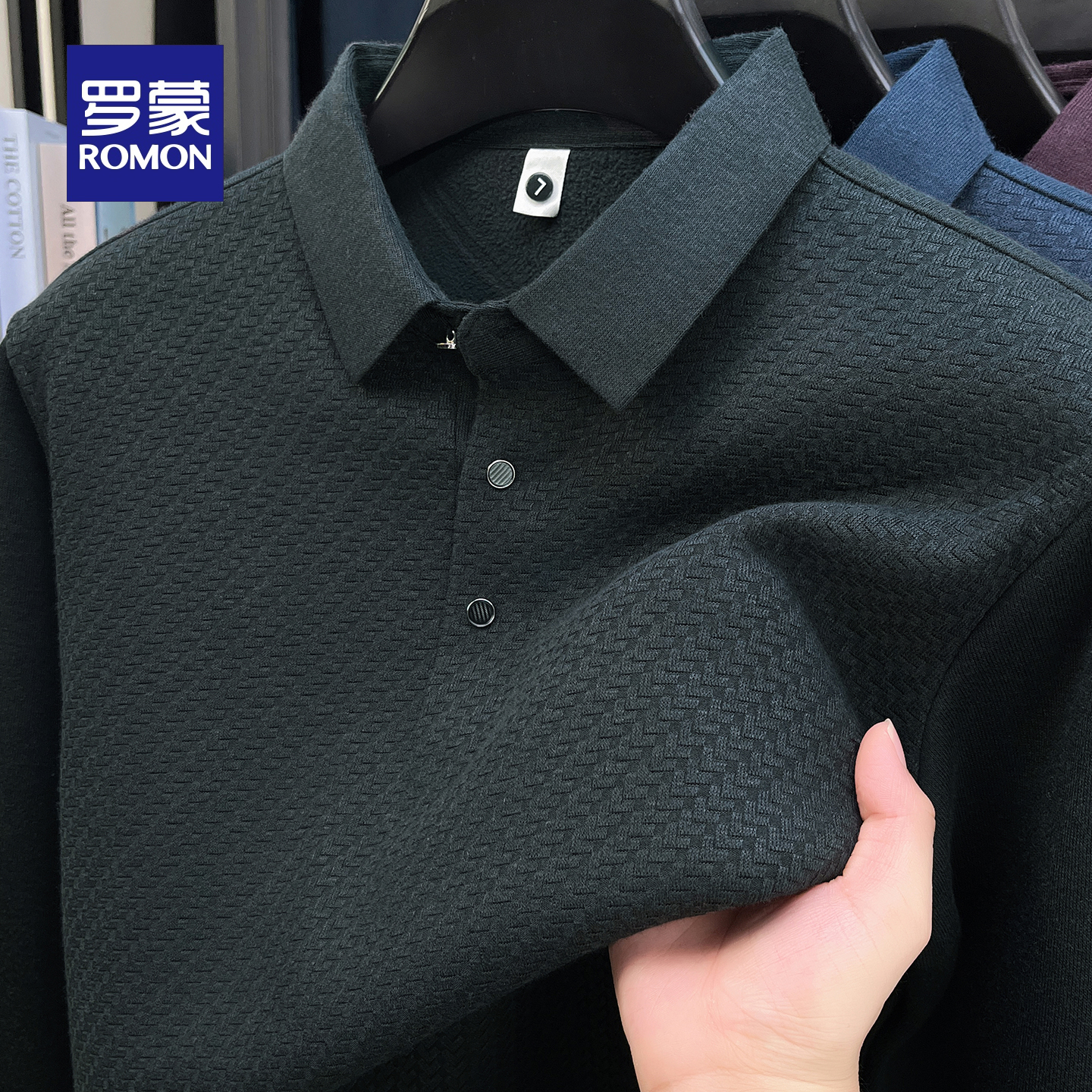 时尚 户外休闲纯色打底衫 翻领长袖 新款 T恤2025秋季 罗蒙男士