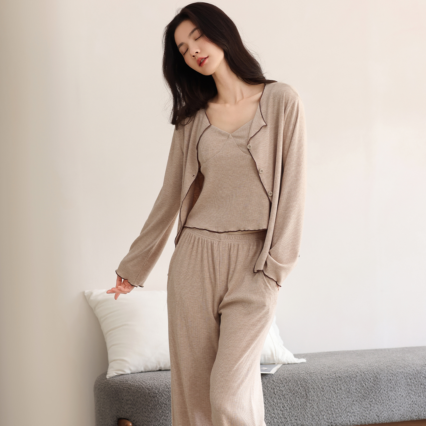 2025新款 女睡衣3件套带胸垫防凸点简约印花家居服 莫代尔春秋季