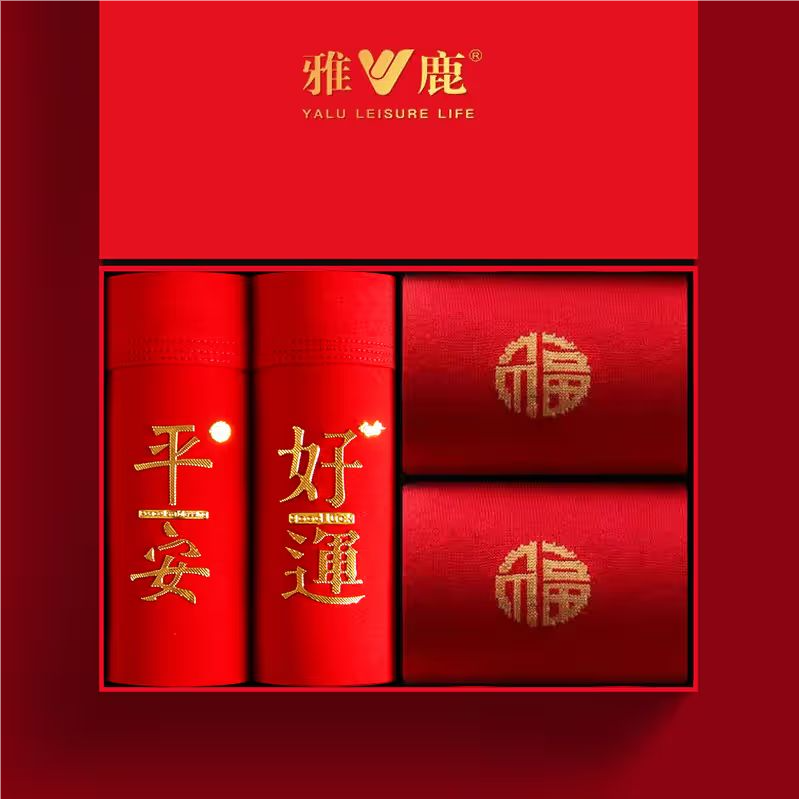 衩大码 雅鹿本命年内裤 结婚生日礼物四角短裤 纯棉大红色平角裤 男士