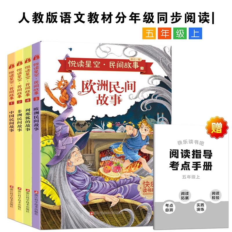 快乐读书吧五上阅读书籍配套人教版 故事田螺姑娘精选全套4册 书目 课外书欧洲非洲民间列那狐 中国民间故事五年级上册必读正版