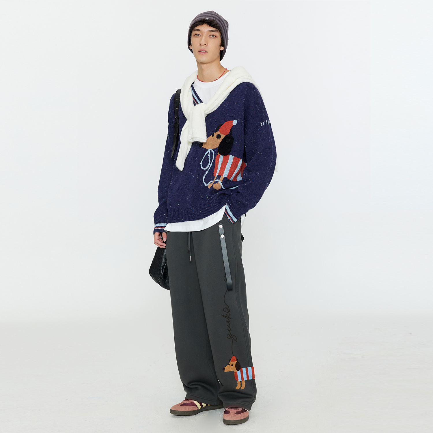 男女潮阔腿休闲裤 秋季 复古绣花束脚宽松卫裤 江南先生NewJNXS美式