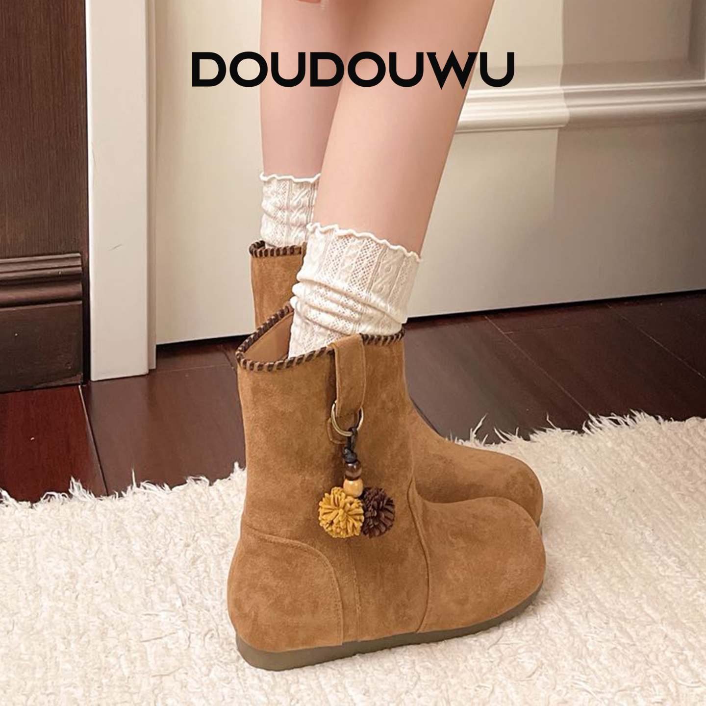 韩版 新款 休闲一脚蹬平底短百搭短靴 2025秋季 豆豆屋厚底马丁靴女鞋