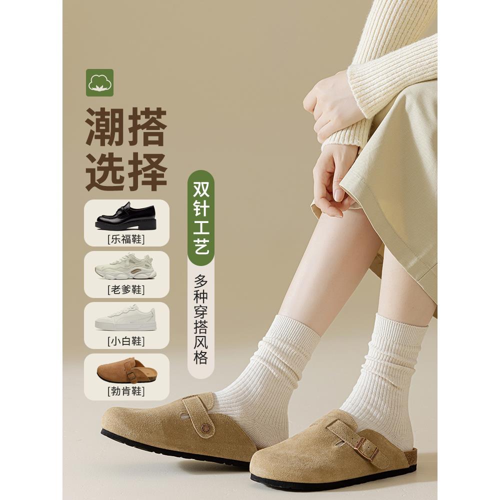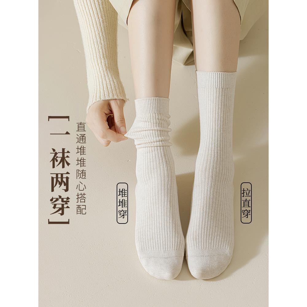 帕兰朵袜子女中筒袜春秋季 棉袜吸汗透气纯色百搭堆堆袜防臭长筒袜