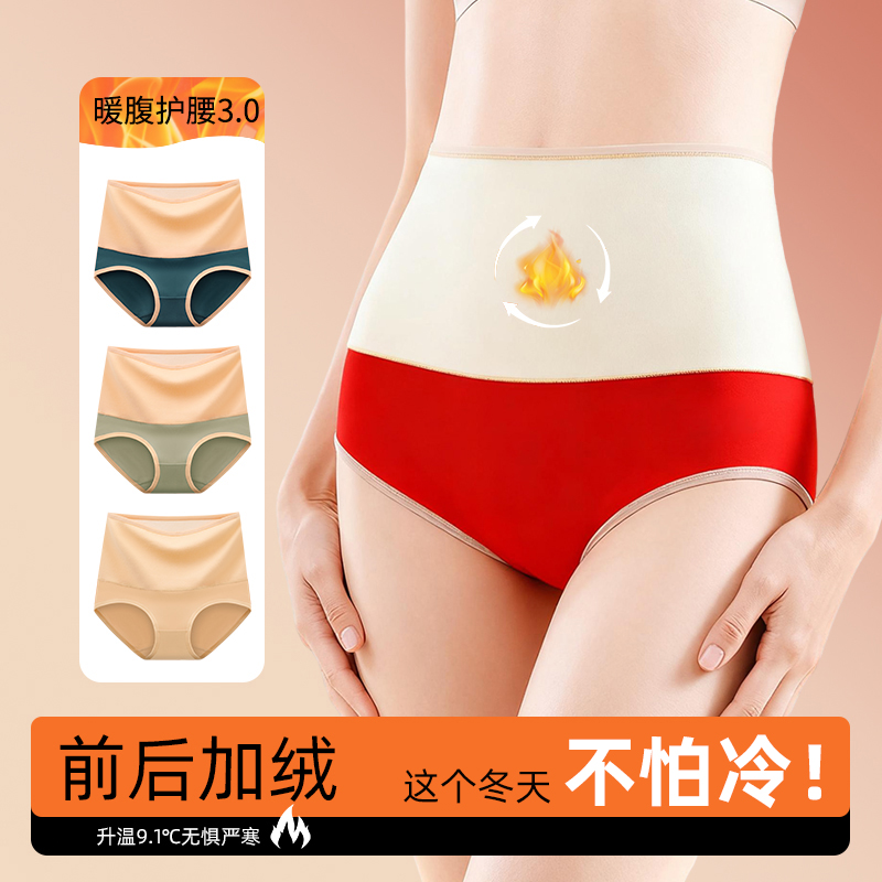 防寒暖宫三角短裤 加绒加厚前后保暖高腰女士内裤 女纯棉抗菌裆冬季