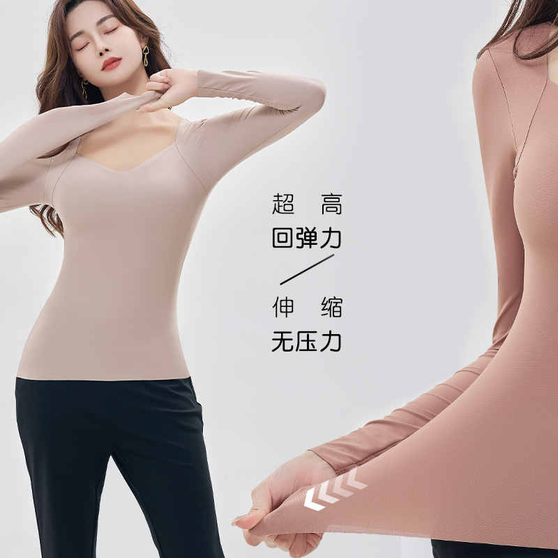 猫人保暖内衣女士美肤衣肌底衣隐形秋衣带胸垫高弹2025新款 打底衫
