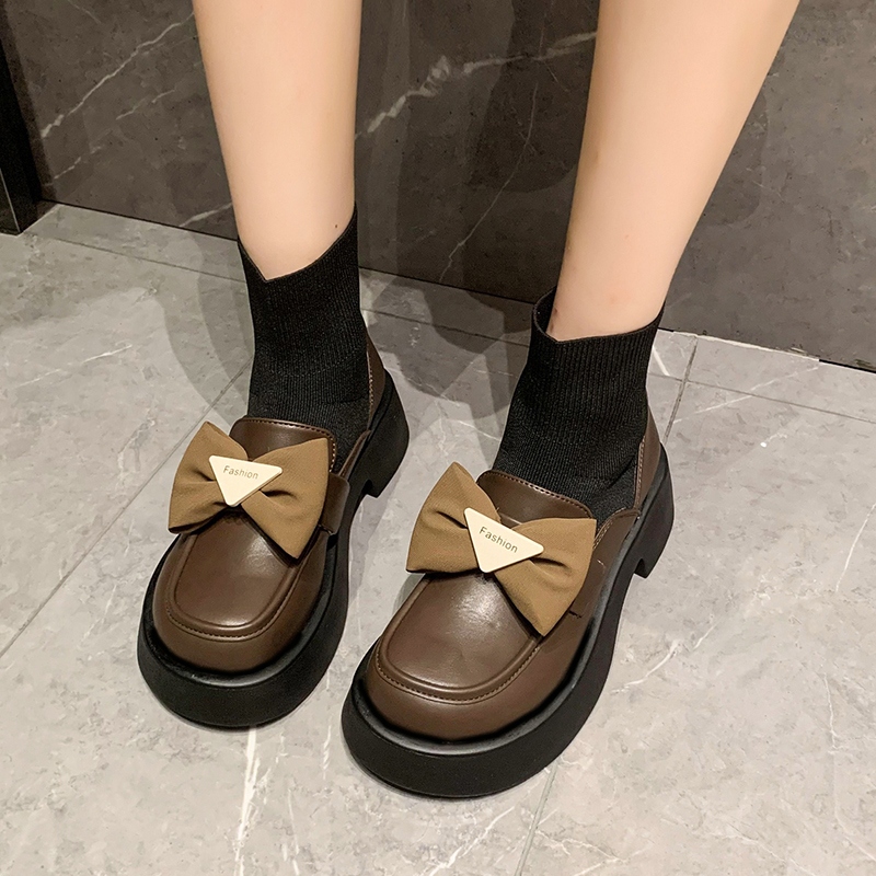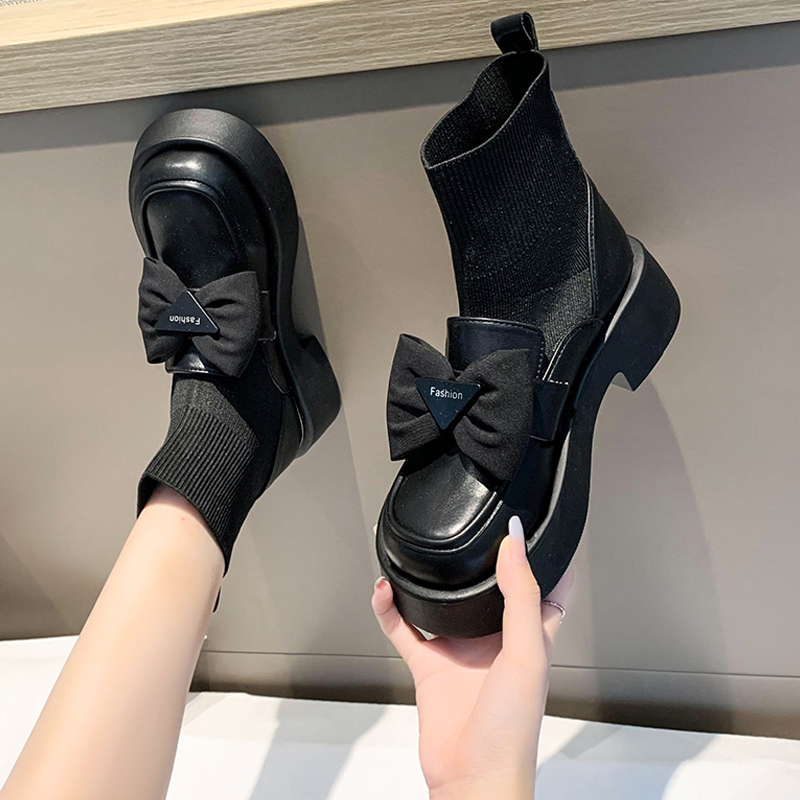 连袜乐福鞋 大东黑色袜靴女2025新款 春秋厚底瘦瘦靴短靴弹力袜子鞋