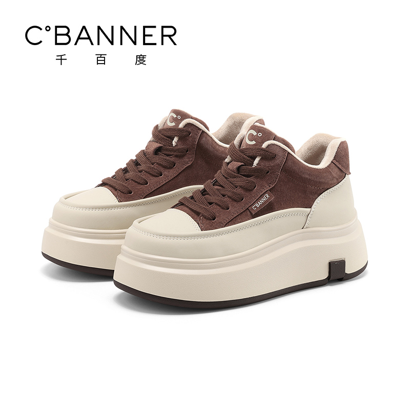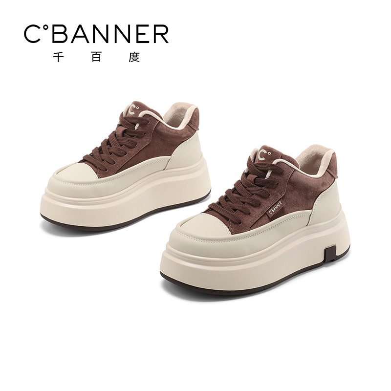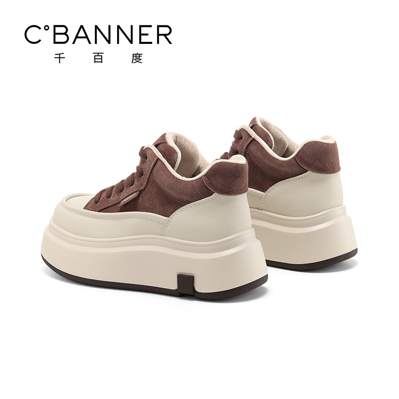 厚底增高深口保暖舒适板鞋 千百度女鞋 复古平底加绒休闲鞋 新款 冬季