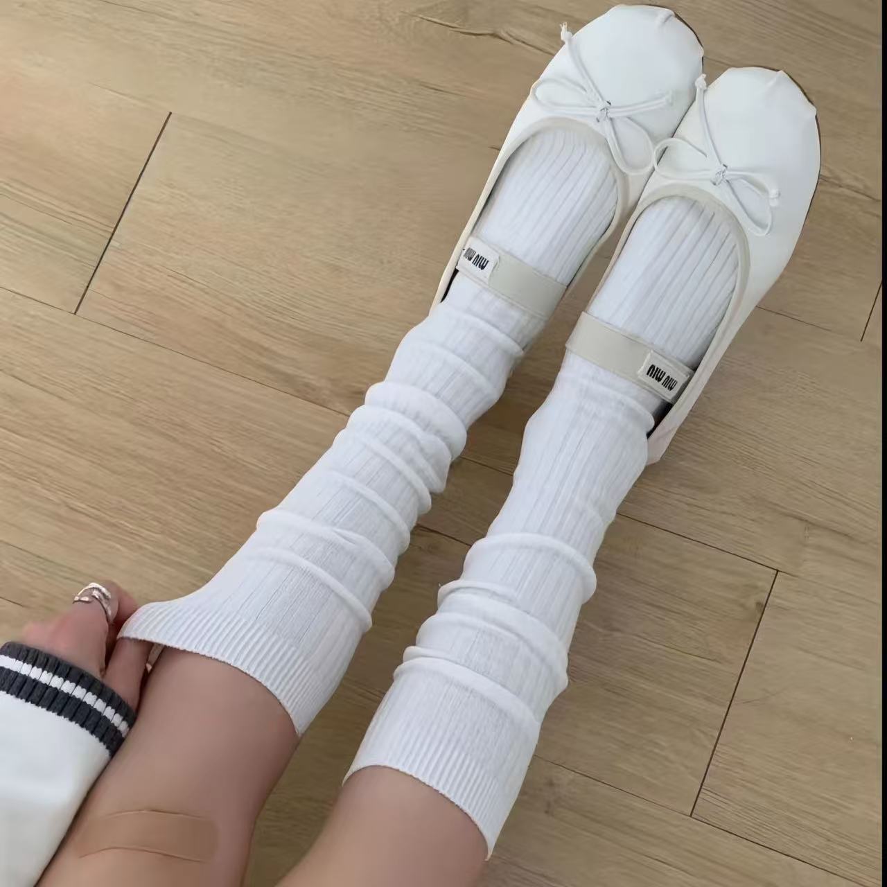 白色无骨秋冬堆堆袜 中筒袜纯棉月子袜2025新款 100%棉袜子女款 秋季