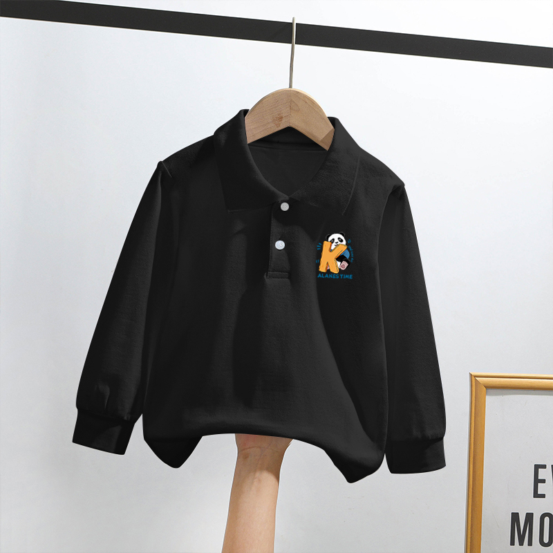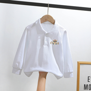 ins男女童打底T恤长袖 春秋款 韩版 时尚 百搭宝宝卡通上衣 扭扣POLO衫
