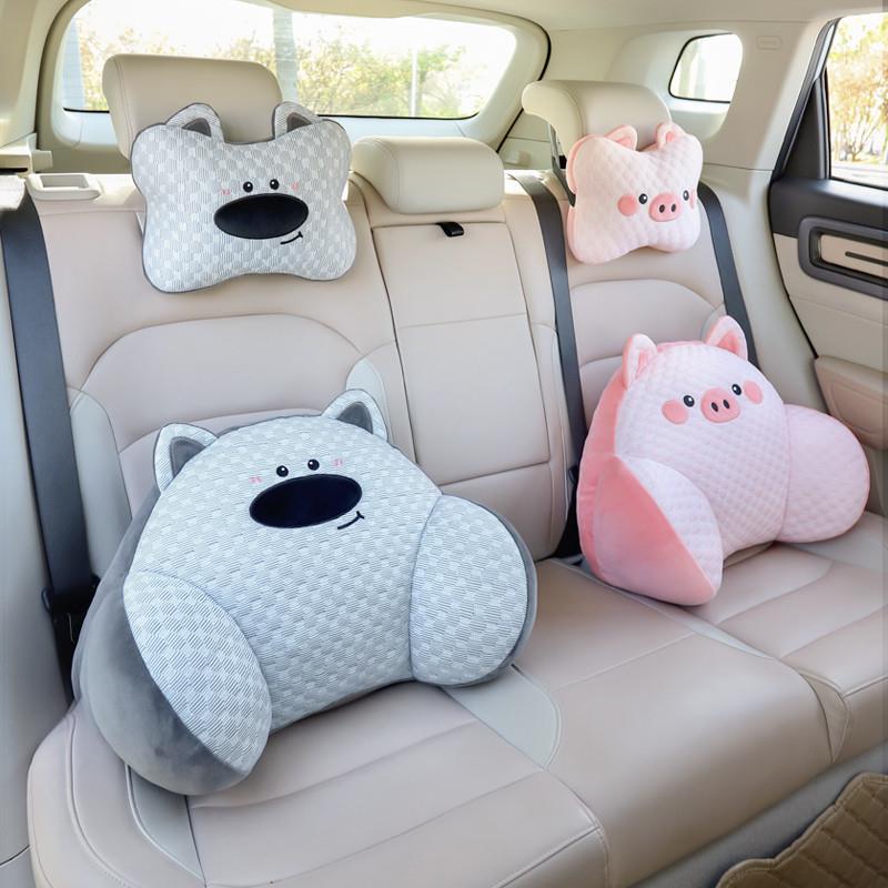 2025新款 女 汽车头枕护颈枕冰豆豆靠枕头卡通可爱车内用腰靠垫套装