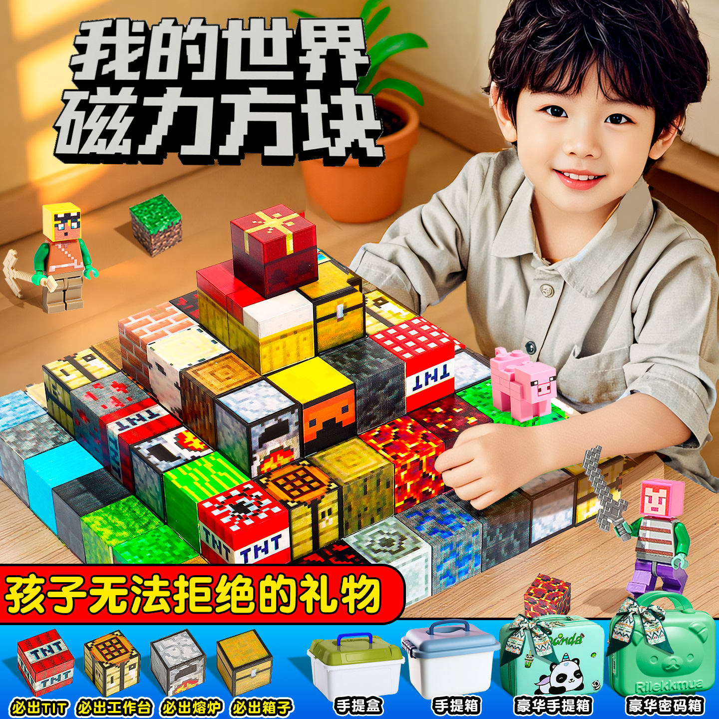 我 世界磁力方块磁吸铁积木儿童桌面游戏益智玩具小男孩生日礼物
