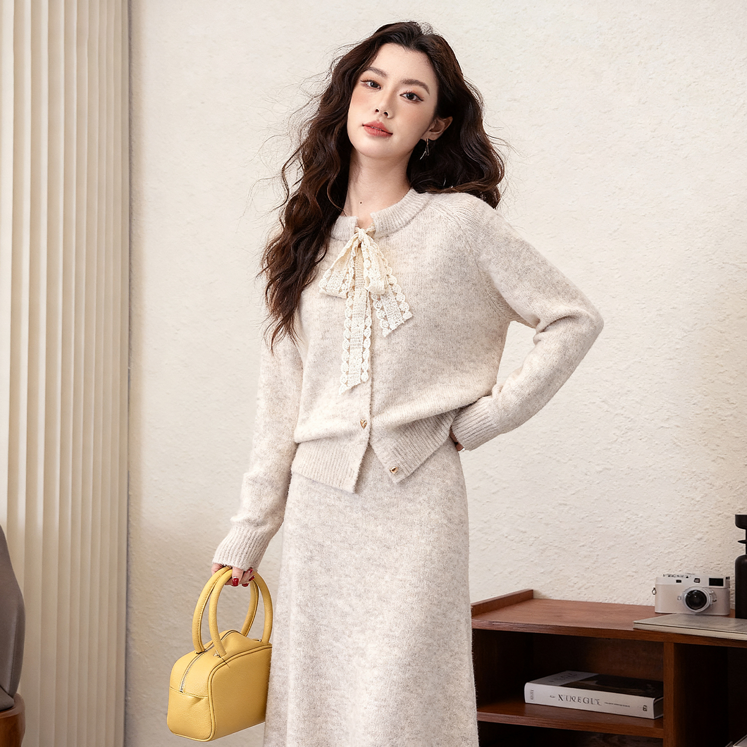半身裙两件装 班尼路针织休闲套装 系带外套中长款 韩版 女秋冬新款