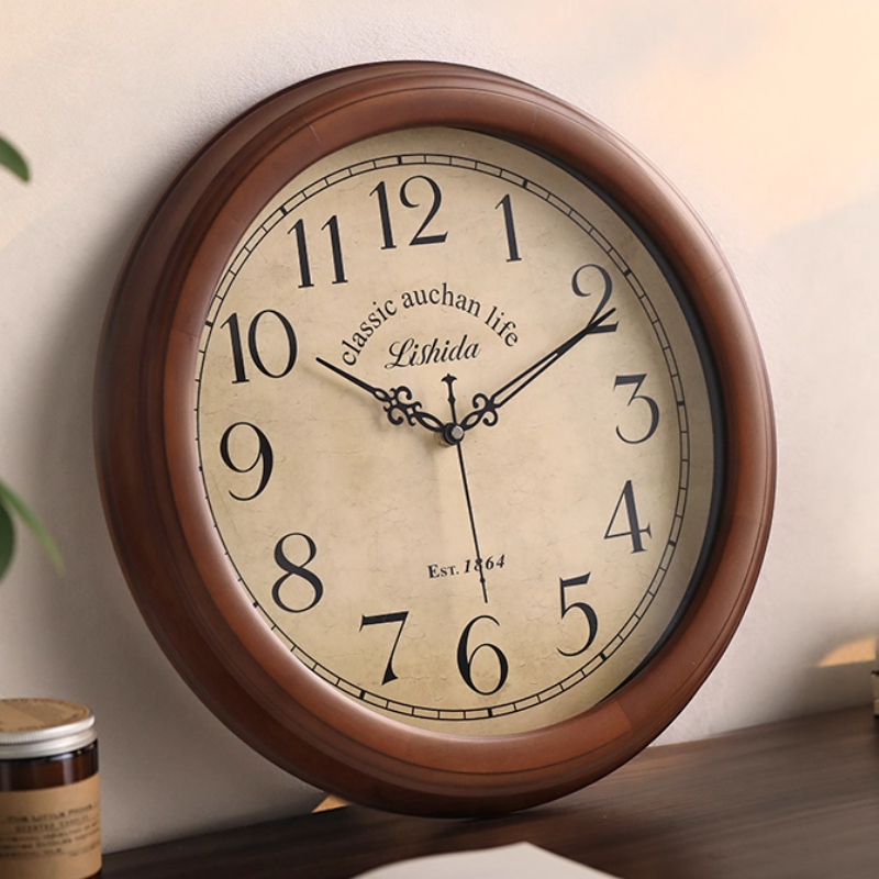 实木创意时钟表挂墙 轻奢高级法式 中古风美式 复古挂钟客厅2025新款