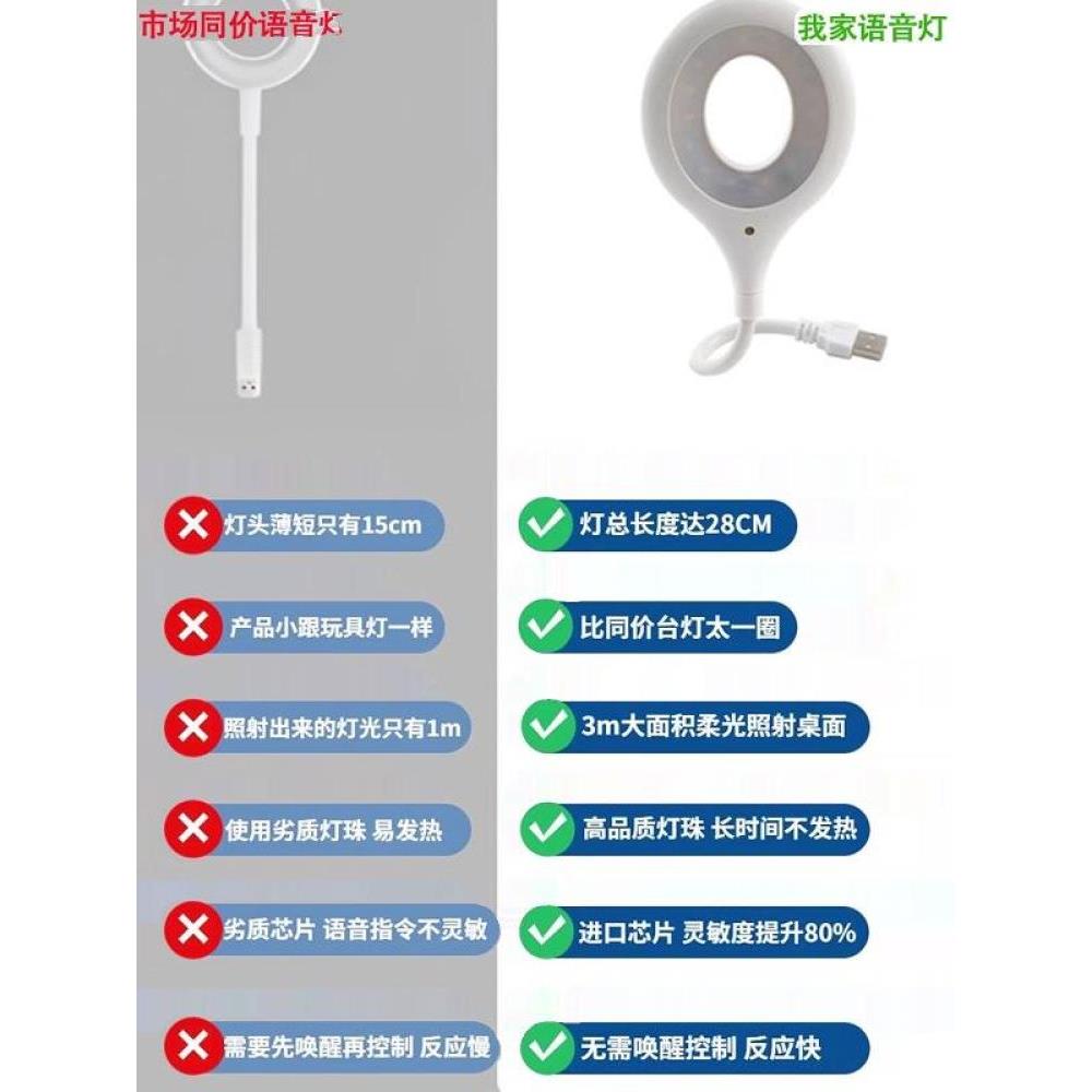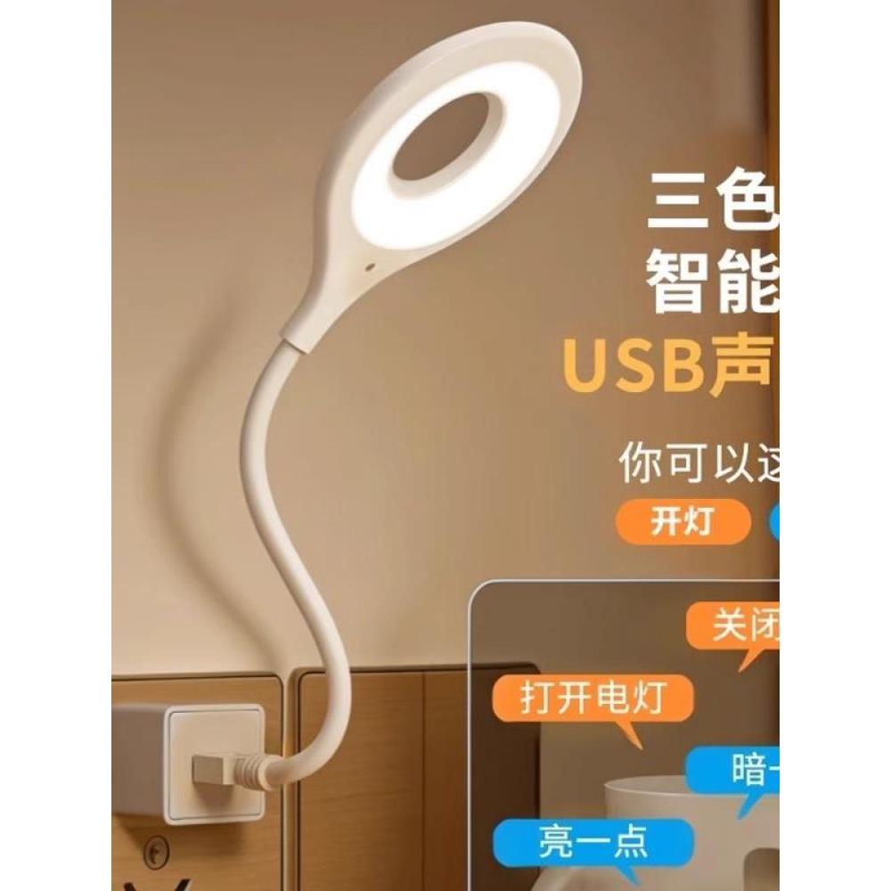 柔光卧室LED声控灯感应床头灯人工语音控制小夜灯智能USB插电台语音小夜灯