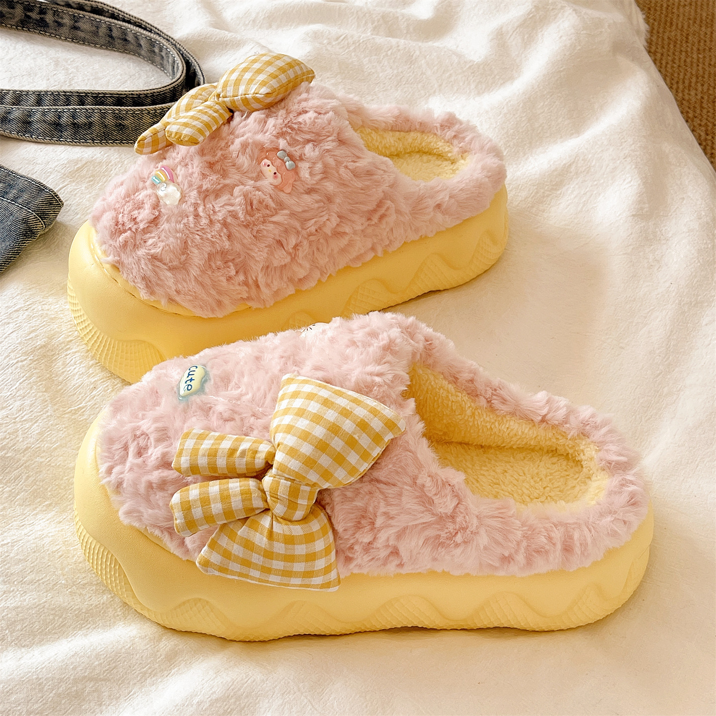 毛毛绒室内家居保暖鞋 厚底防滑2025新款 子居家 女士秋冬季 棉拖鞋