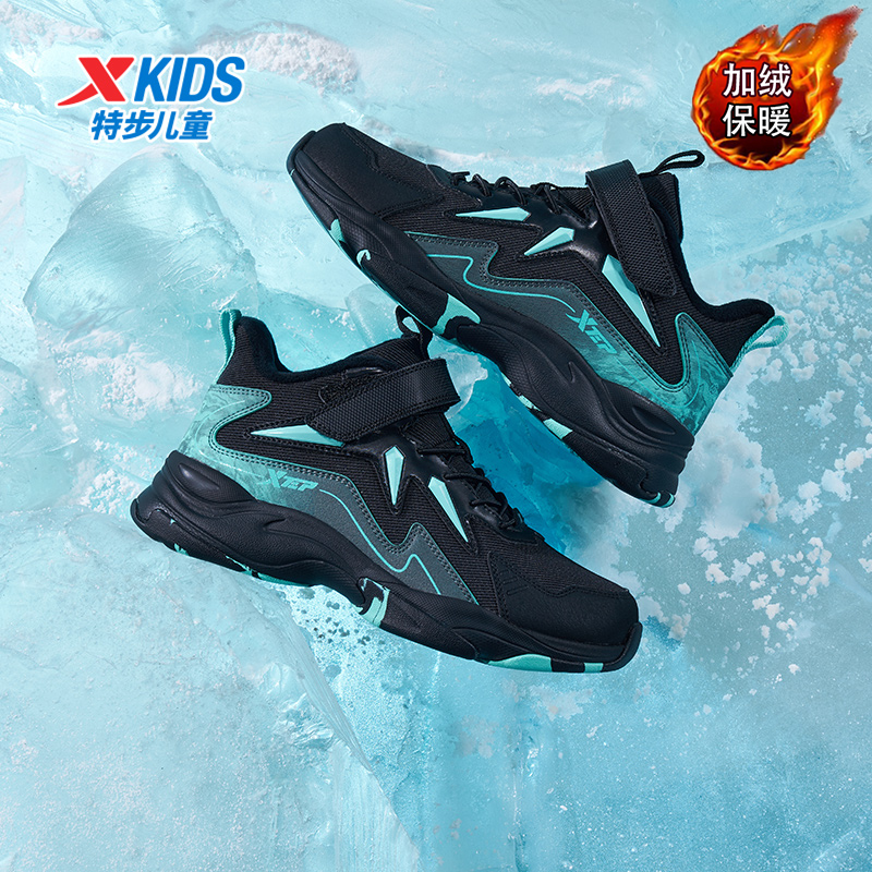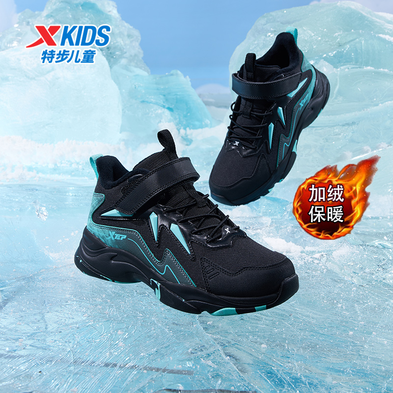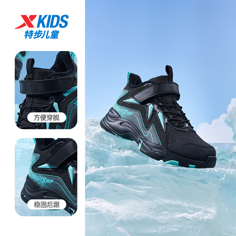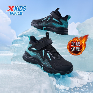 男童魔术贴加绒保暖皮面防水运动鞋 2025秋冬新款 儿童棉鞋 特步童鞋
