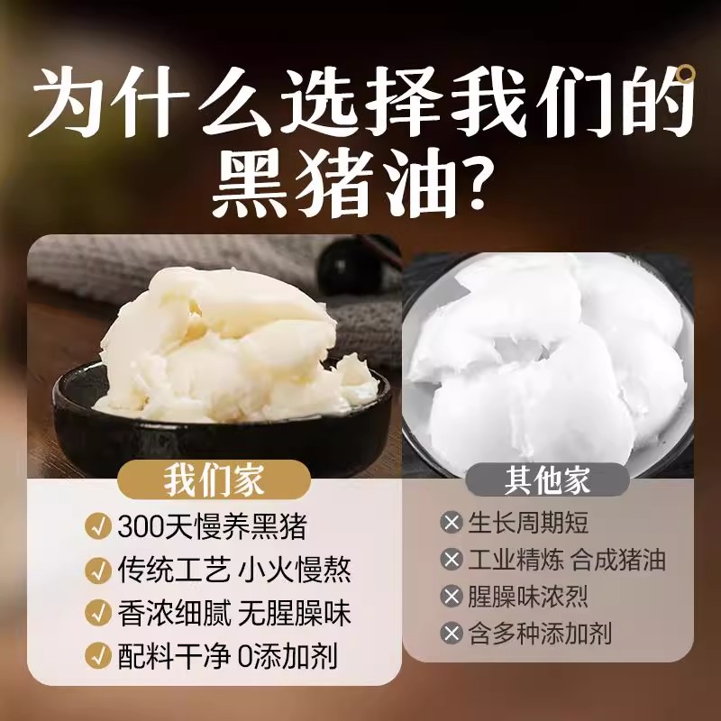 央妈推荐 正宗黑猪油食用无添加拌面拌饭起酥油家用新鲜土猪油增鲜