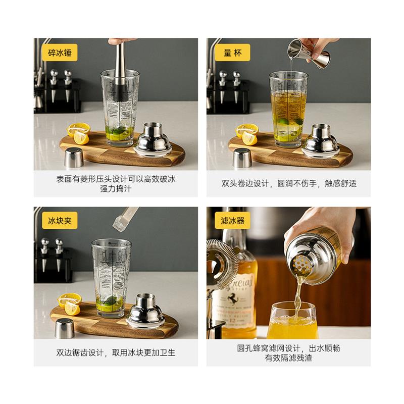 雪克杯不锈钢调酒师调酒器工具套装 玻璃手摇壶鸡尾酒收纳架摇杯