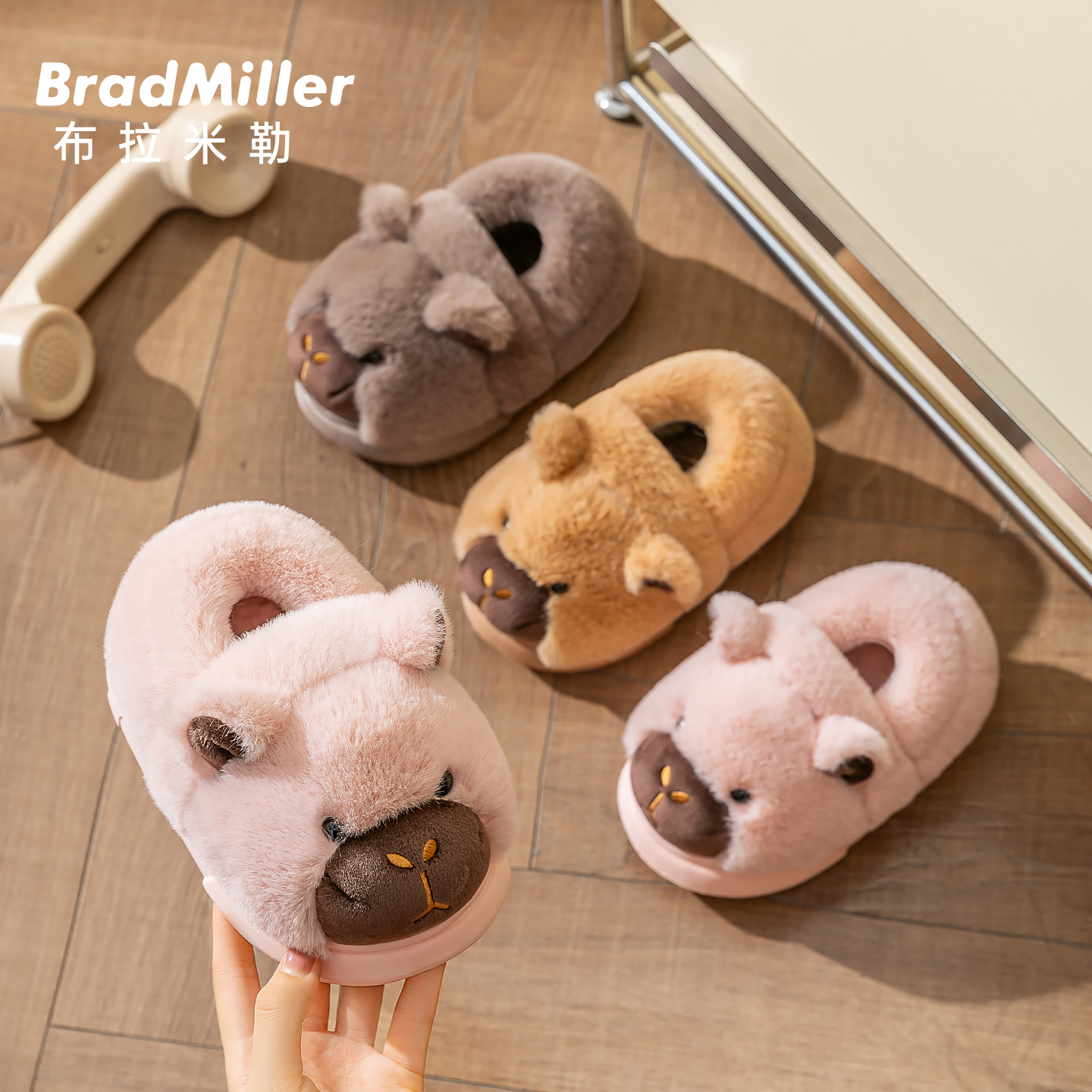 卡通男童居家室内棉拖毛绒包跟中大童保暖宝宝棉鞋 儿童棉拖鞋 冬季