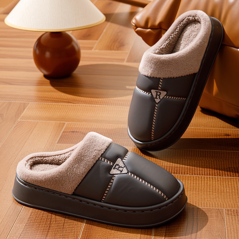 2025新款 男款 耐磨家居家用保暖加厚室内女士 棉拖鞋 防水PU皮面冬季