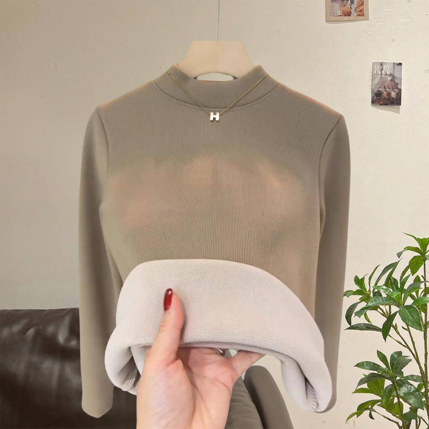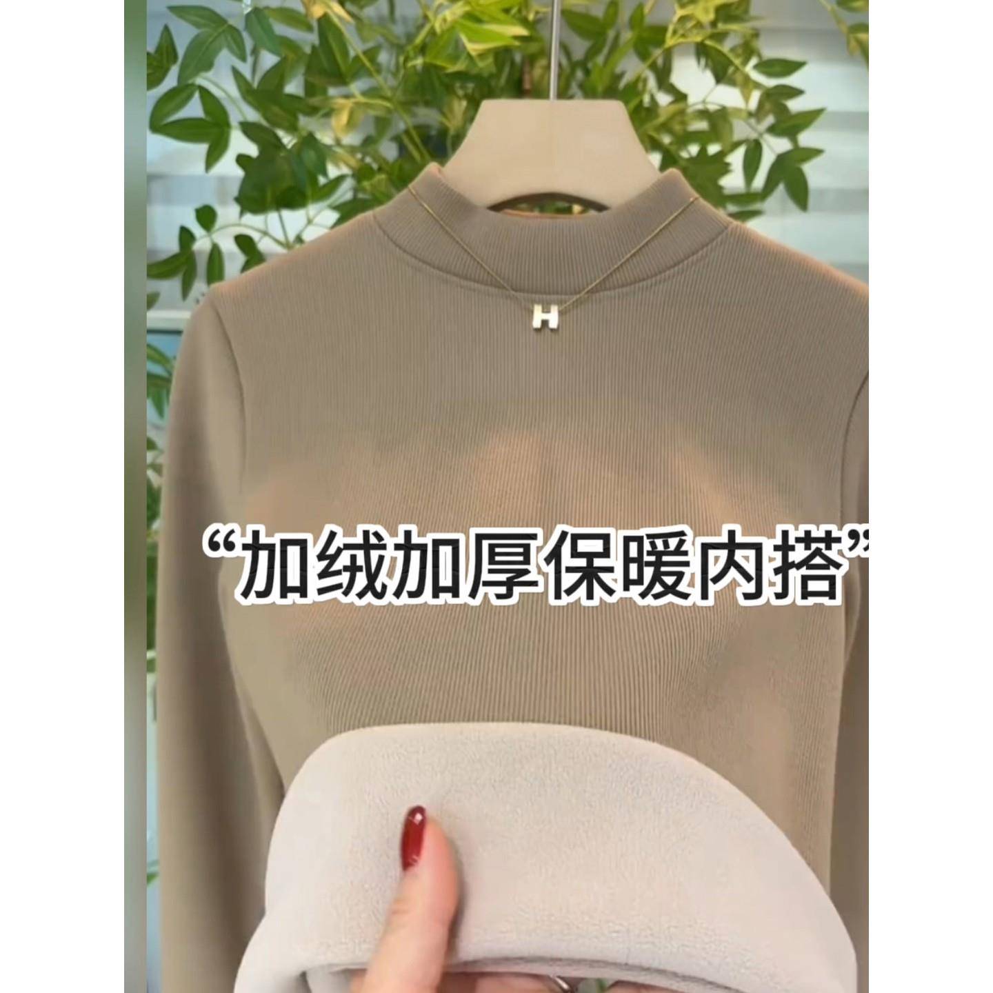 内搭长袖 修身 上衣1022e 女秋新款 配大衣半高领加绒加厚打底衫