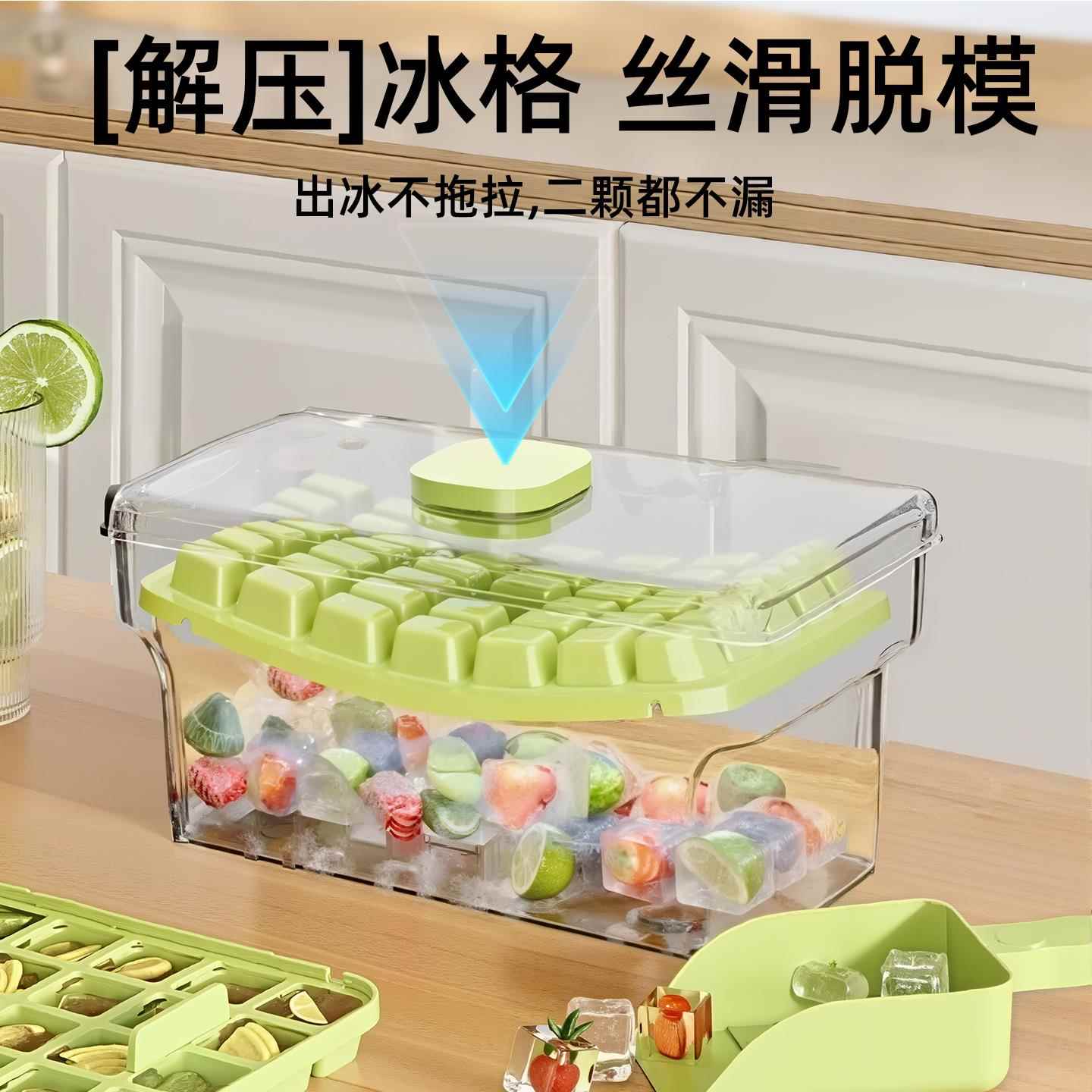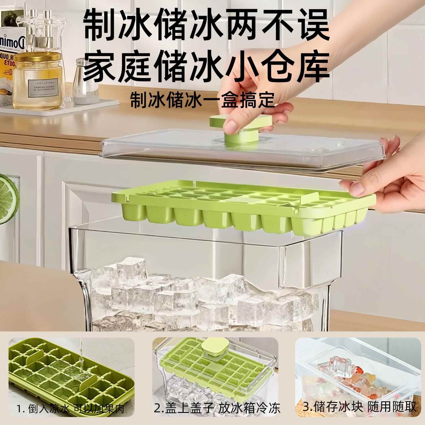 冰块模具大容量按压冰格家用食品级制冰储冰盒带盖冰箱冻冰神器bz