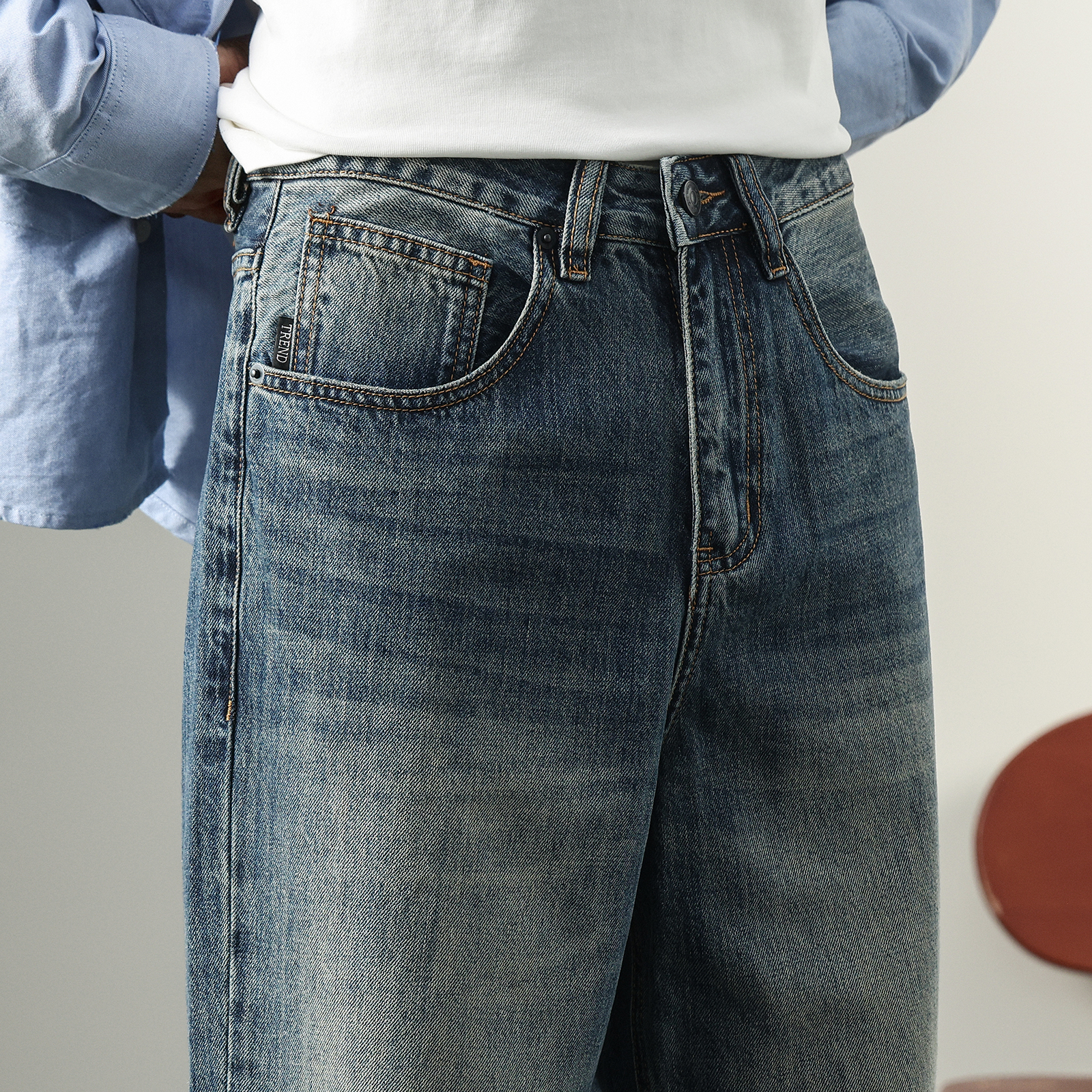 SPIRIT吉普水洗牛仔裤 复古蓝宽松直筒长裤 男款 美式 2025秋季 JEEP