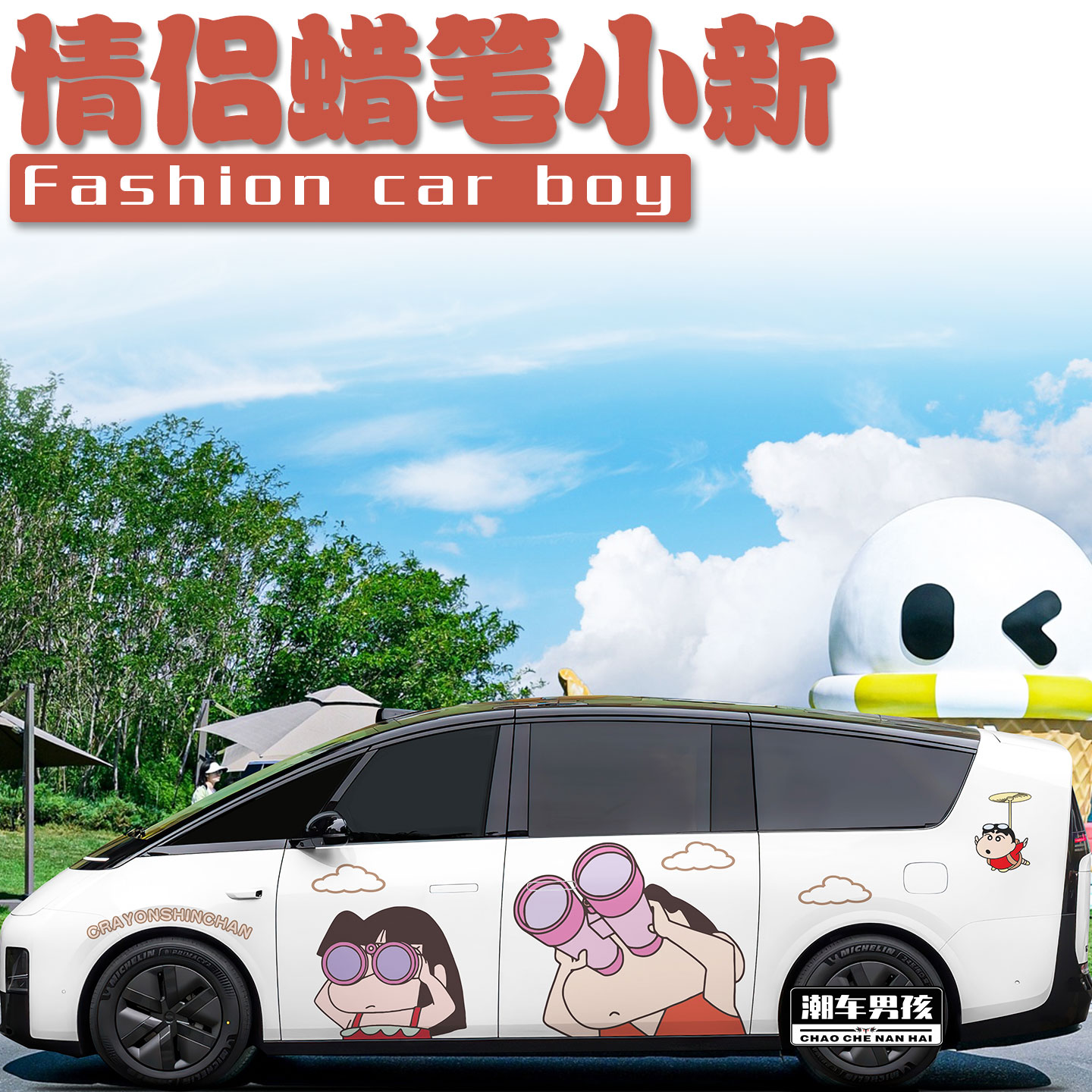 定制 个性 情侣专属适用于理想mega i8车贴情侣蜡笔小新汽车车身贴