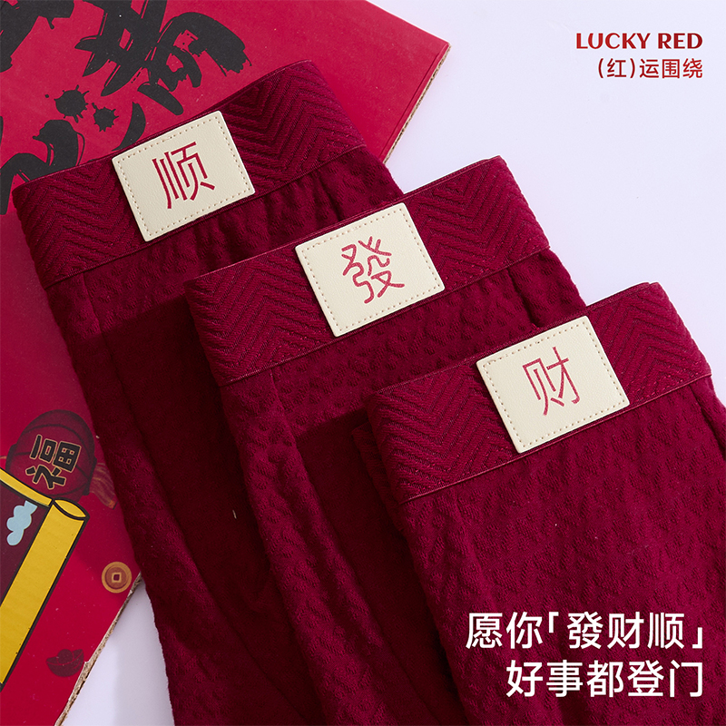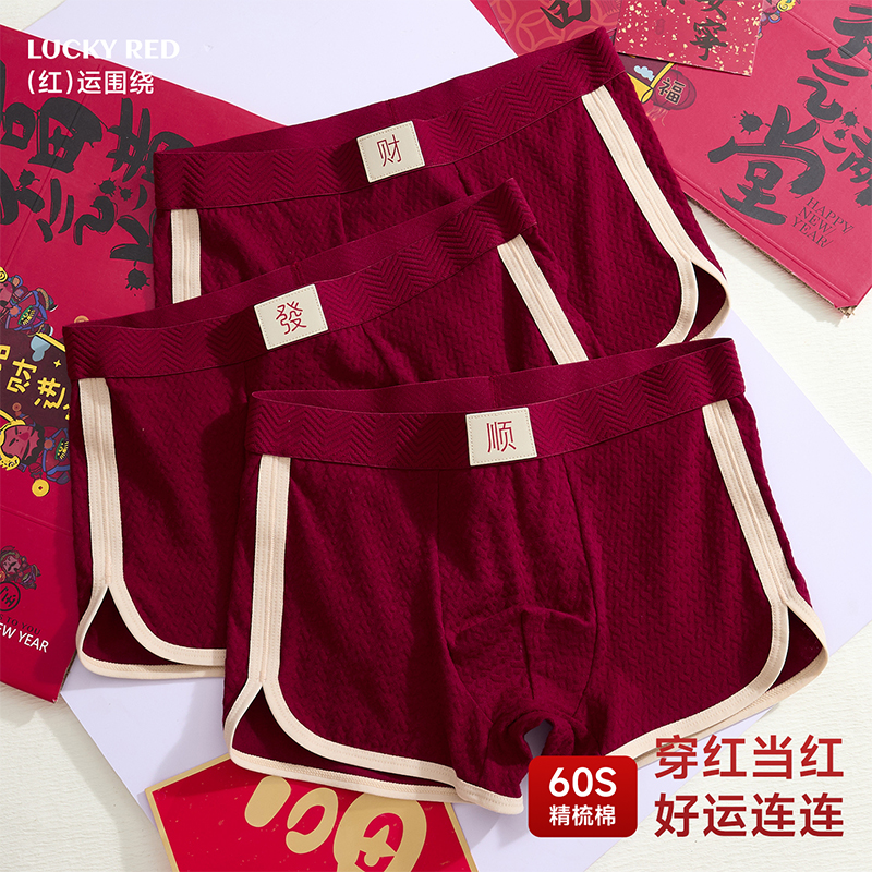 本命年大红色属蛇年礼物全棉四角短裤 纯棉平角裤 头 内裤 七匹狼男士