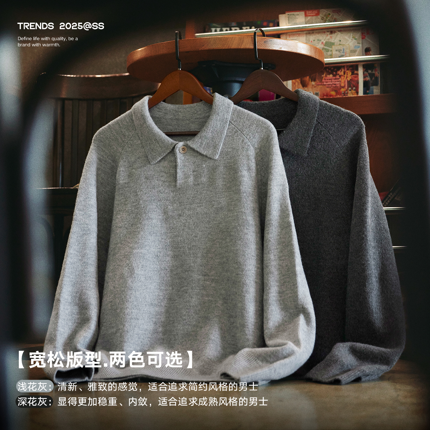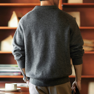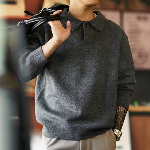 宇透老钱风美式 潮 复古重磅翻领毛衣男秋冬日常通勤保暖打底针织衫