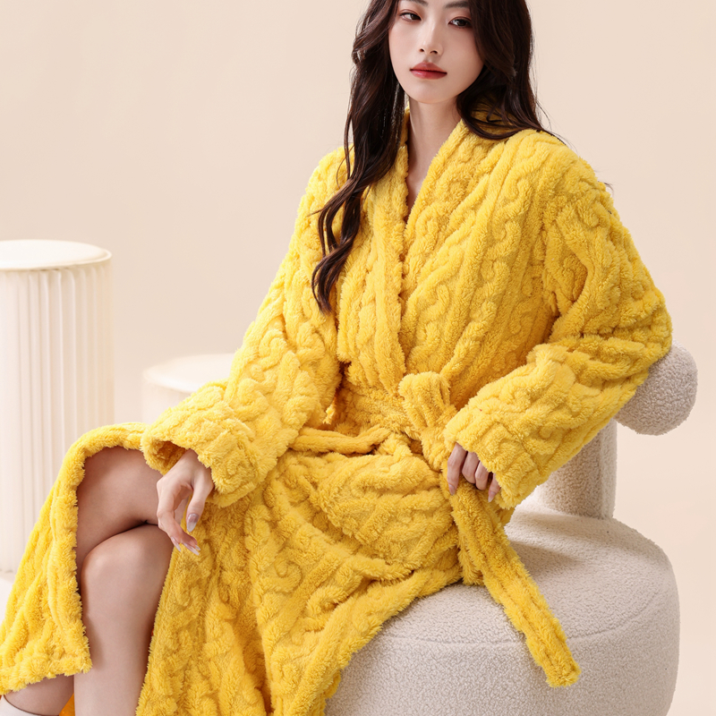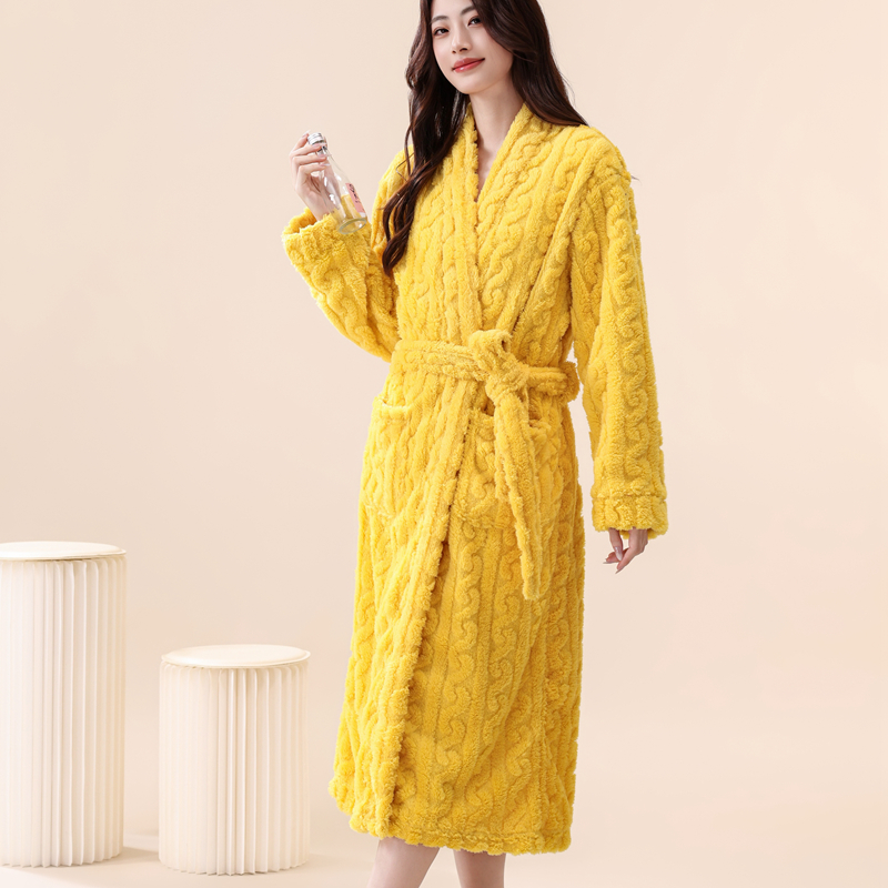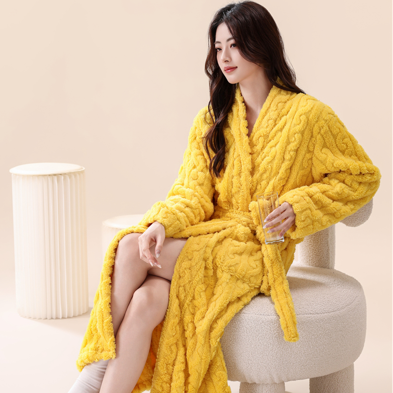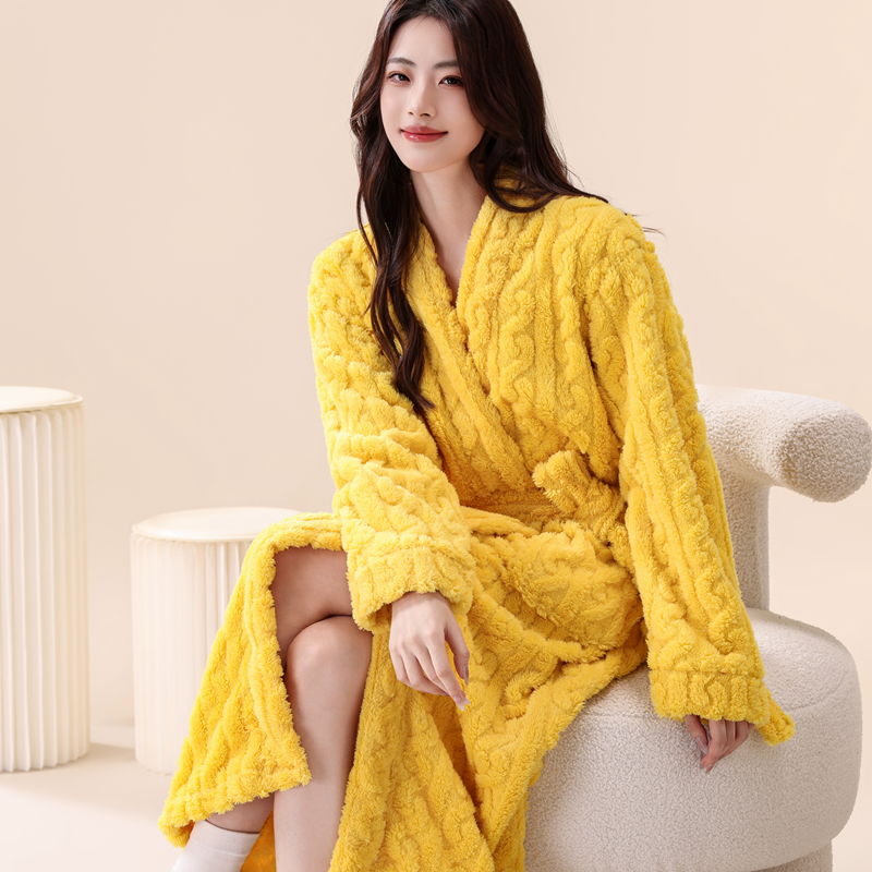 晨袍珊瑚绒家居服 大码 睡袍长款 秋冬法兰绒麻花睡衣女浴袍性感长袖