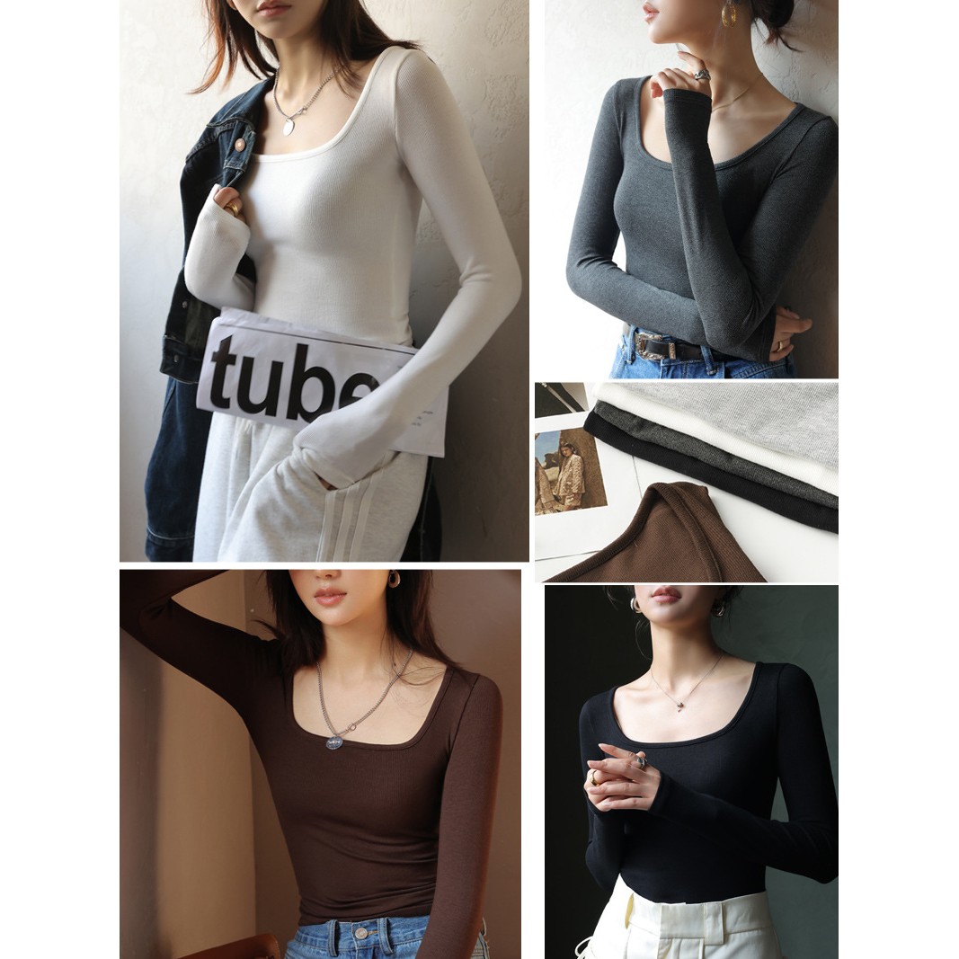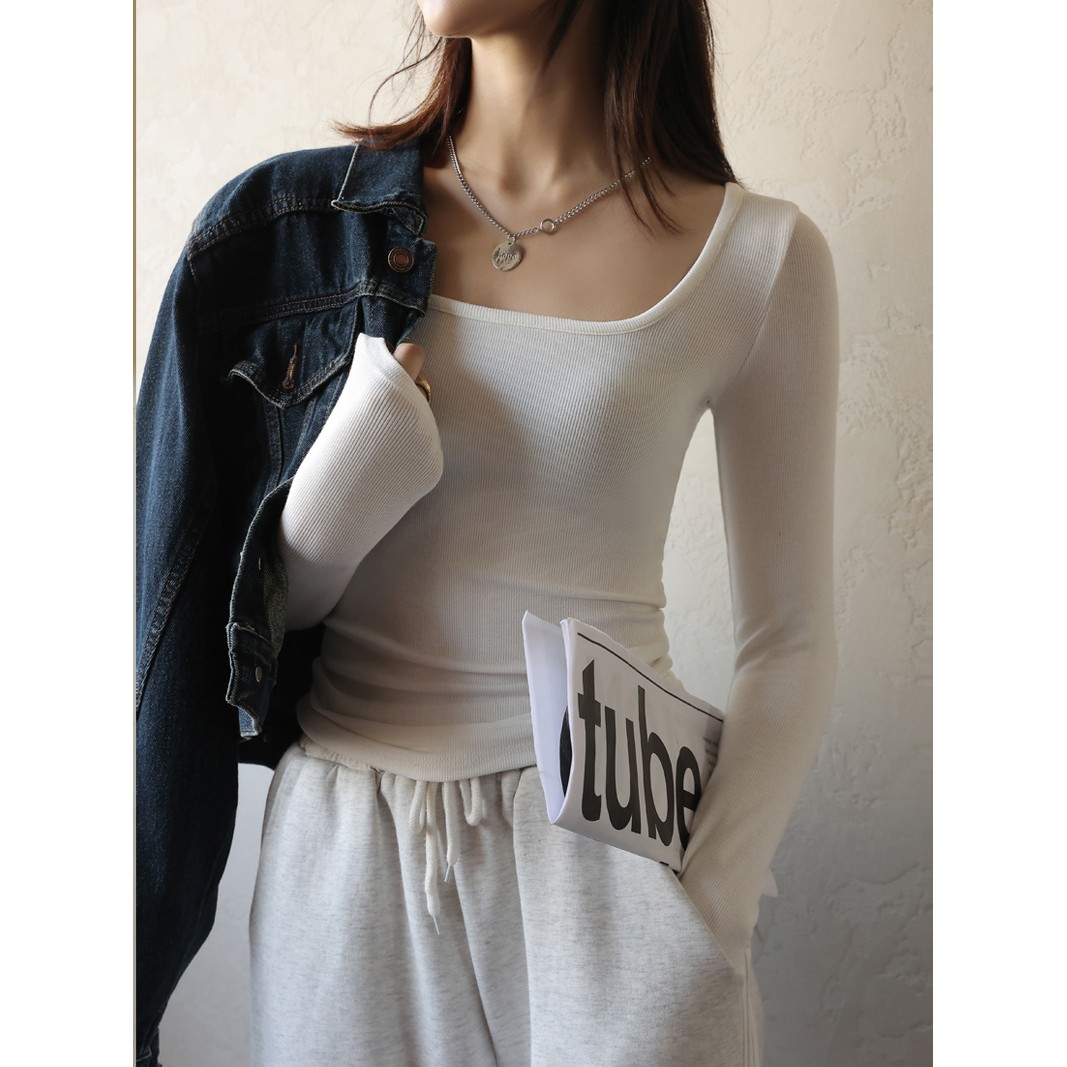 正肩修身 秋冬内搭U领高级感长袖 T恤体恤上衣 女2025新款 方领打底衫