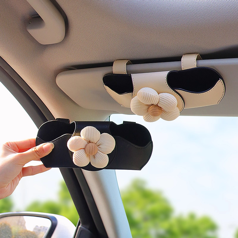 车载眼镜夹汽车用遮阳板收纳车内气质小花墨镜盒车上挂眼镜放置架