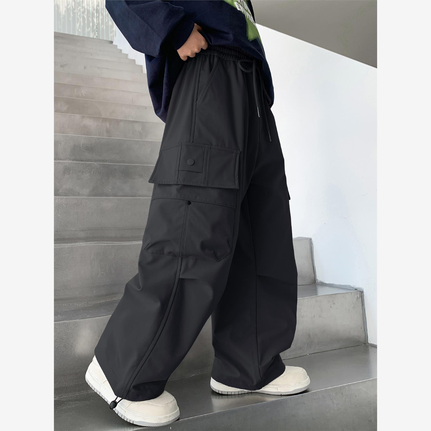 潮 子束脚中大童针织黑色宽松男孩2025春秋长裤 儿童运动卫裤 男童裤