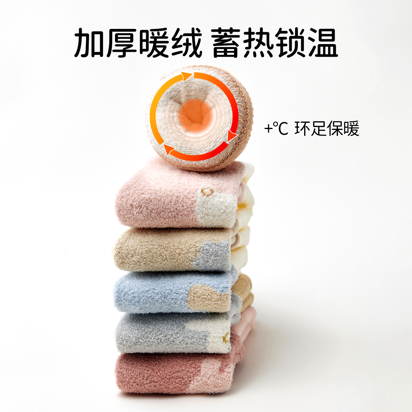 婴儿袜子秋冬宝宝加绒加厚保暖半边绒袜新生儿无骨袜男女童中筒袜