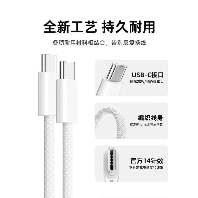 国家3C认证 c充电器 适用于iphone手机type 适用苹果16数据线15promax充电线PD45W编织双原L 旗舰店正品