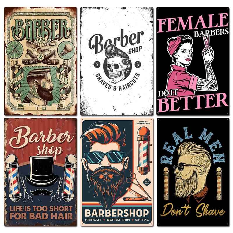 跨境外贸复古怀旧铁皮画铁艺小挂画金属标牌理发店墙面装 饰品挂件